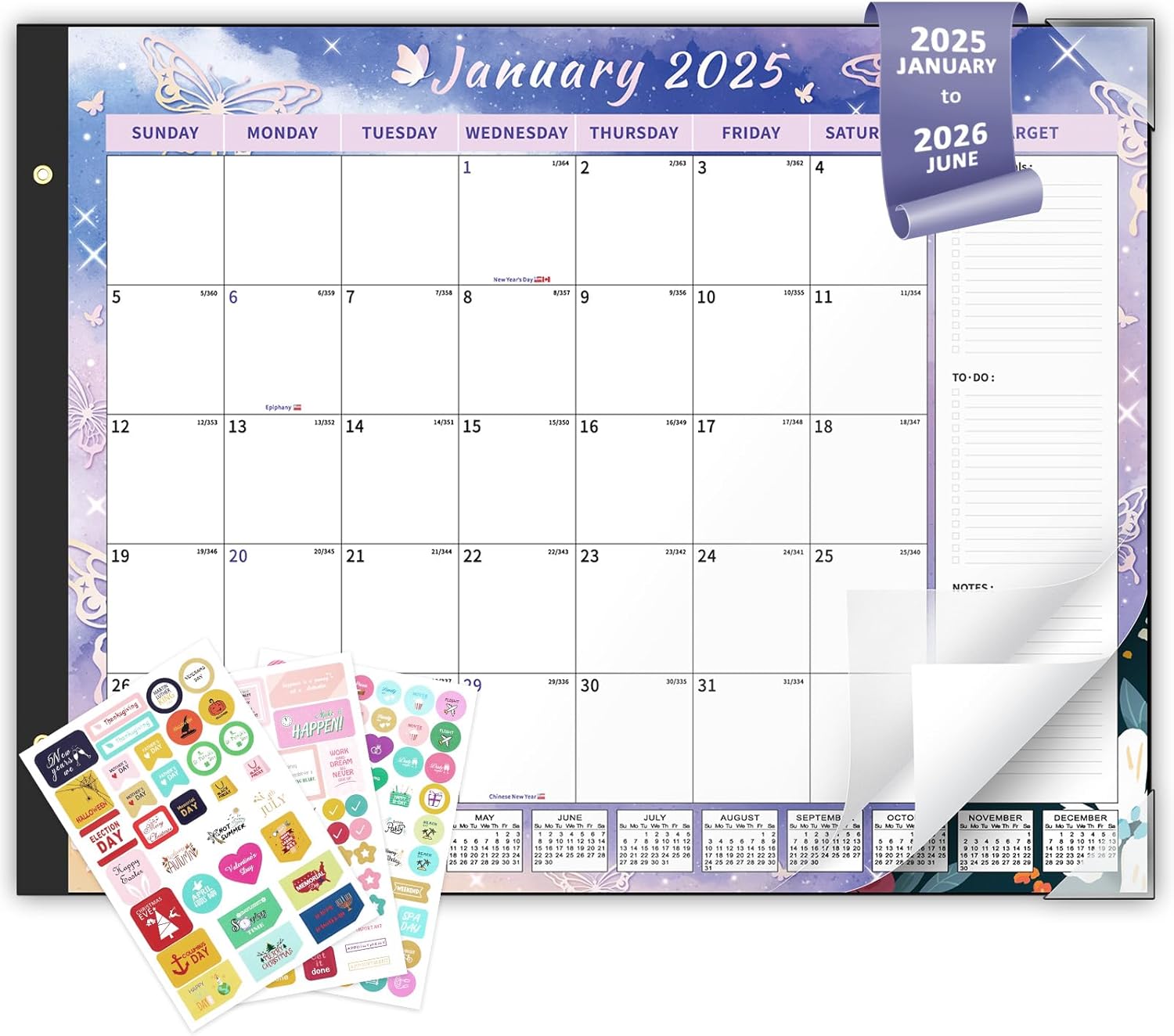 Ospelelf Desk Calendar 2025-2026 Large 22"x17" Monthly Planner Pad with Protective Cover 18 Months Butterfly Floral