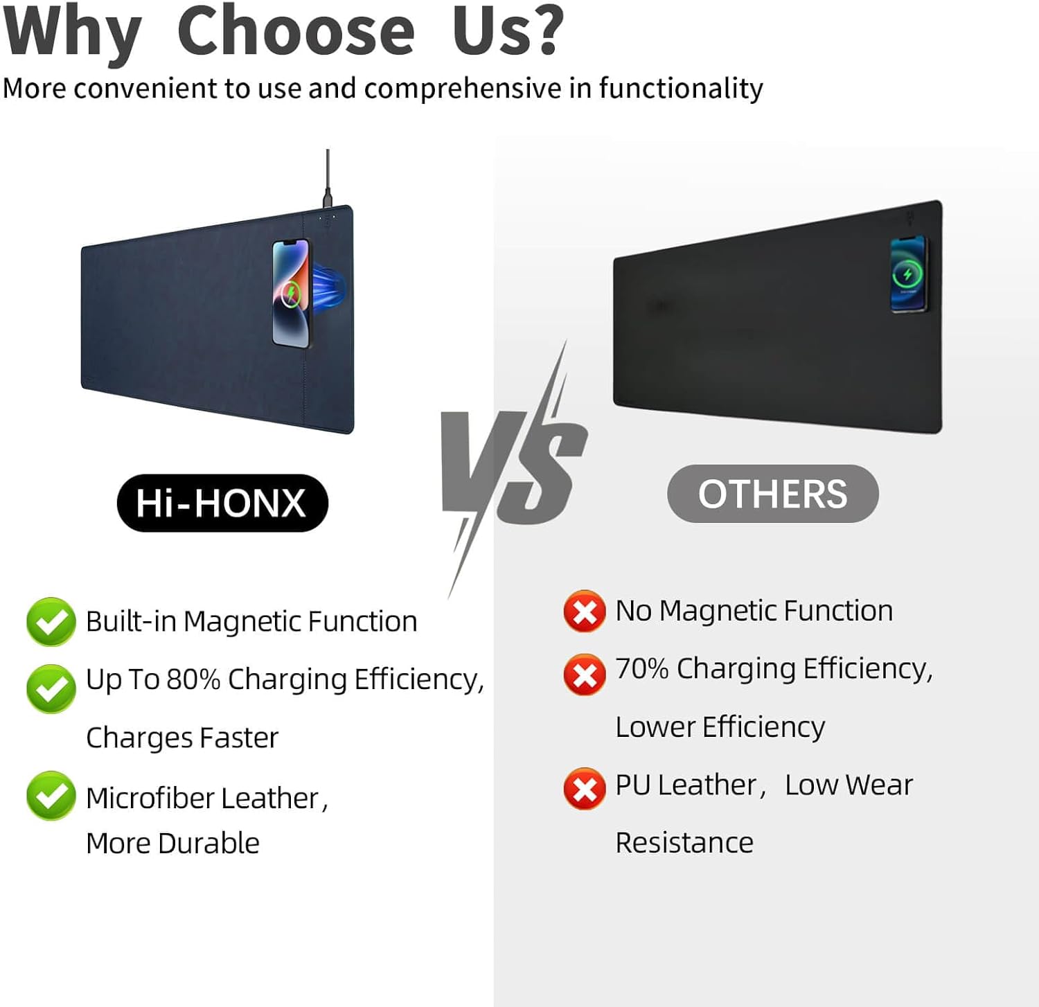 - Super Smooth Surface: Our wireless charging desk pad is crafted with premium microfiber leather fabric, offering a surface with an unparalleled smooth touch, enhancing the precision of your mouse control and elevating your user experience