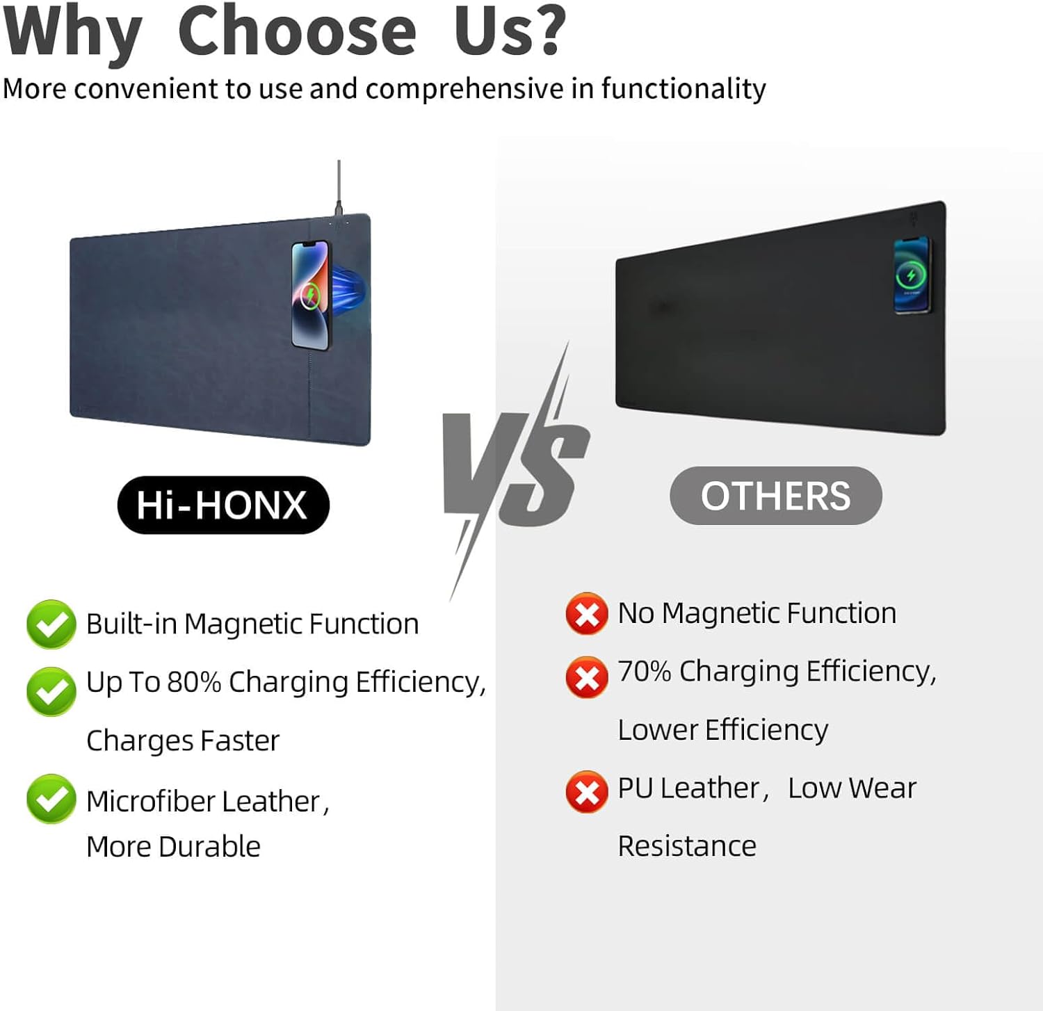 - Super Smooth Surface: Our wireless charging desk pad is crafted with premium microfiber leather fabric, offering a surface with an unparalleled smooth touch, enhancing the precision of your mouse control and elevating your user experience