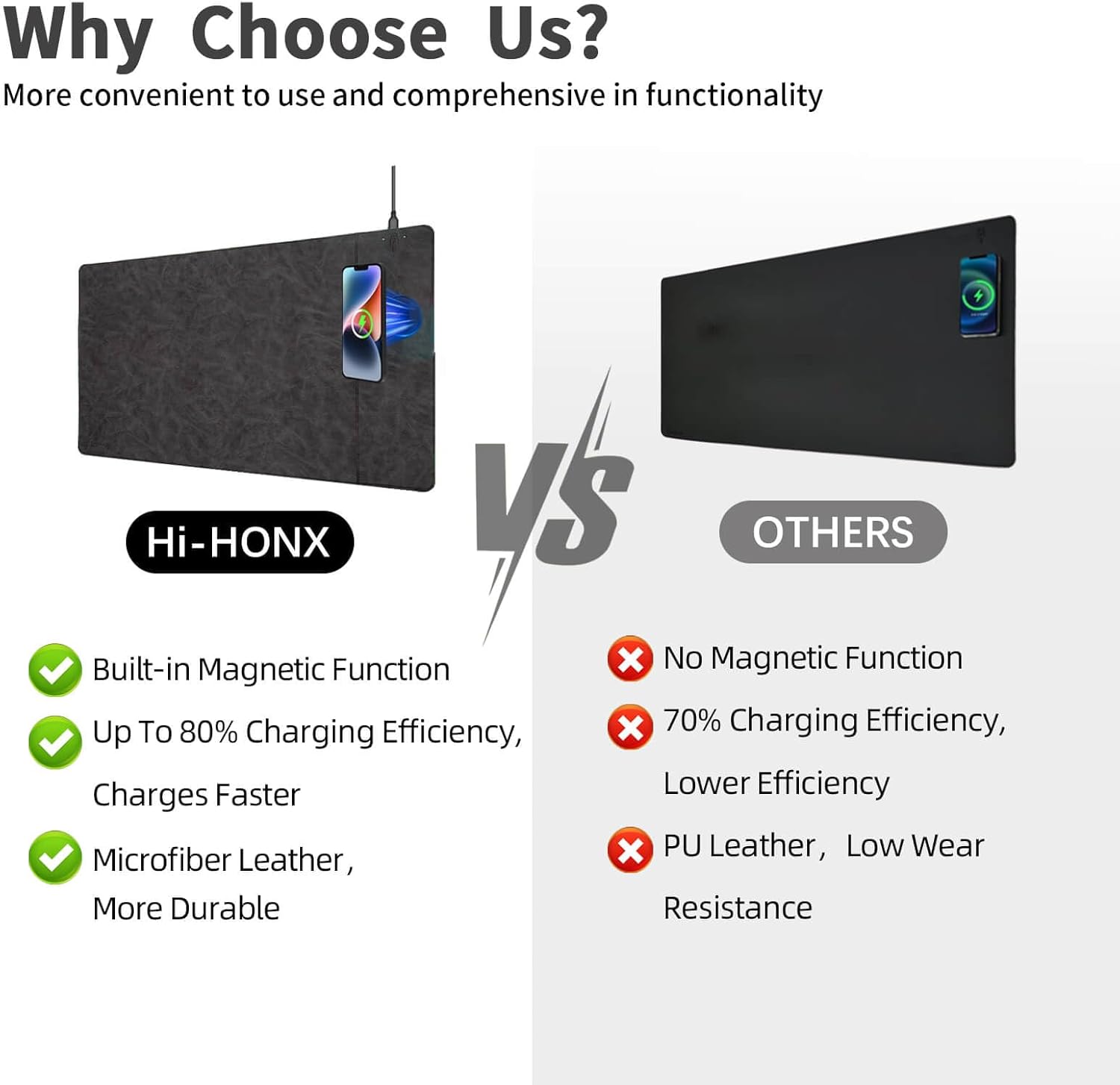 - Super Smooth Surface: Our wireless charging desk pad is crafted with premium microfiber leather fabric, offering a surface with an unparalleled smooth touch, enhancing the precision of your mouse control and elevating your user experience
