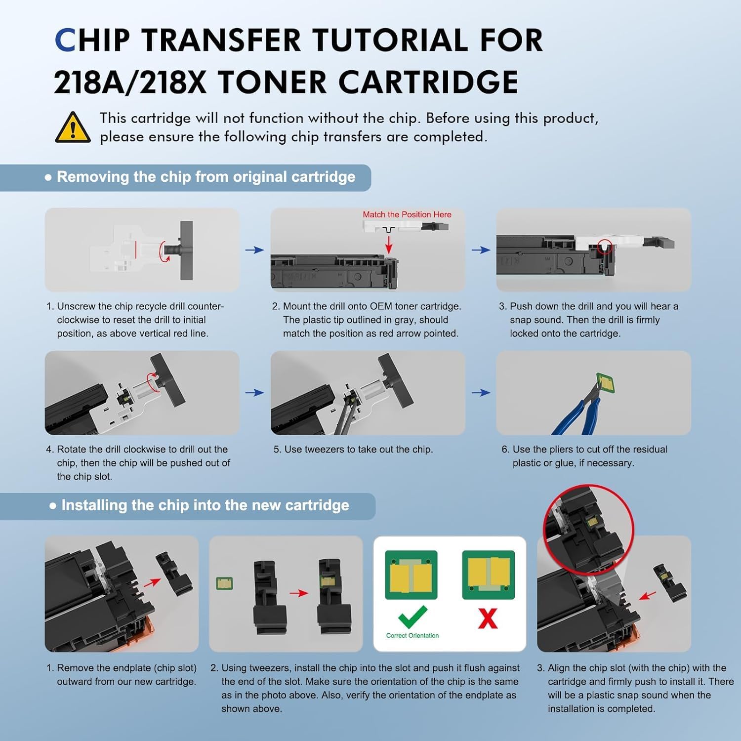 - No chip: Cool Toner w2180 218a 218x toner cartridges 4 pack do not have chips, need to transfer oem 218a or 218x toner cartridge chip to them. Please refer to manual 'W2180&2190A/X Series Chip Transfer Instruction' to complete the chip transfer. The W2180 and W2190 are the same product.