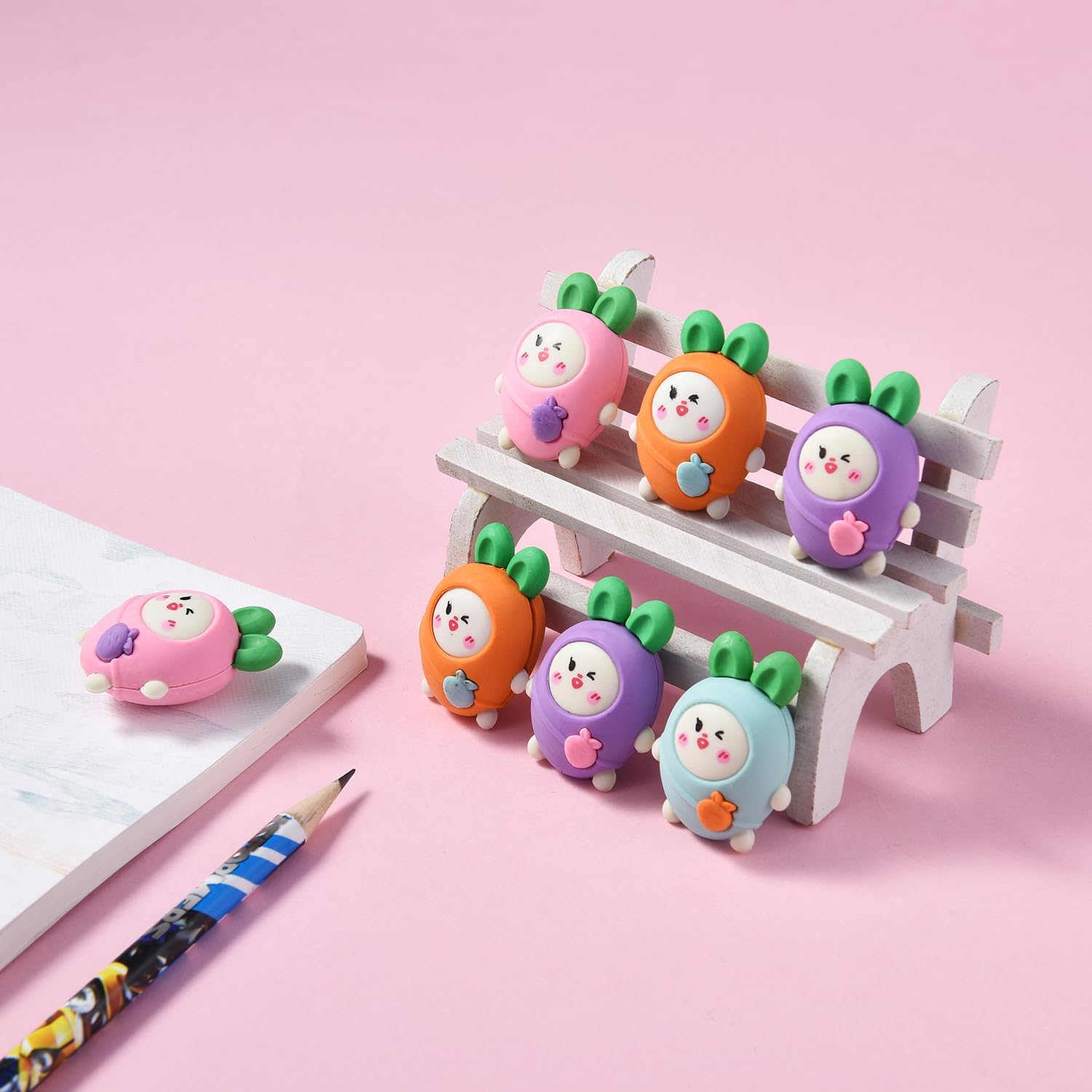 20 Pack Carrot Erasers for Kids, 3D Erasers for Boys Girls, Fun Take Aapart Erasers for School Supplies Prize Gifts Party Favors