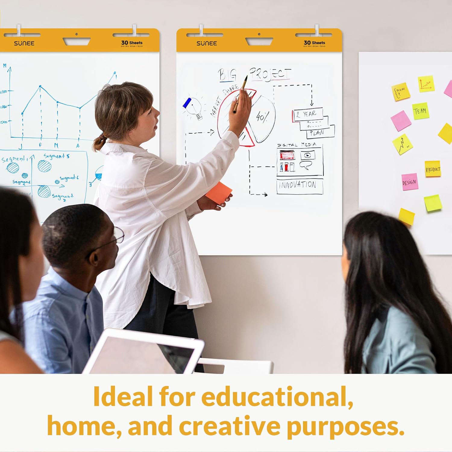 SUNEE Sticky Easel Pads, 25x30 Inches, 30 Sheets/Pad, 2 Pack – Self Stick Flip Chart Paper for Whiteboards, Premium Large White Chart Paper
