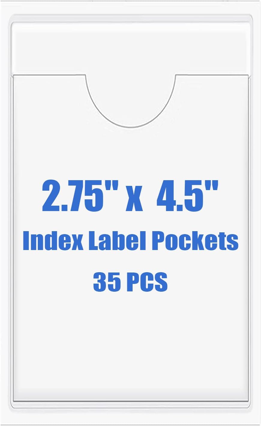 Origin-Joy 35 PCS Self Adhesive Index Card Pockets with Top Open, Clear Plastic Label Holder for Cards of Note, Library and Business, Adhesive Label Pockets & Card Holder (2.75 x 4.5 inch)
