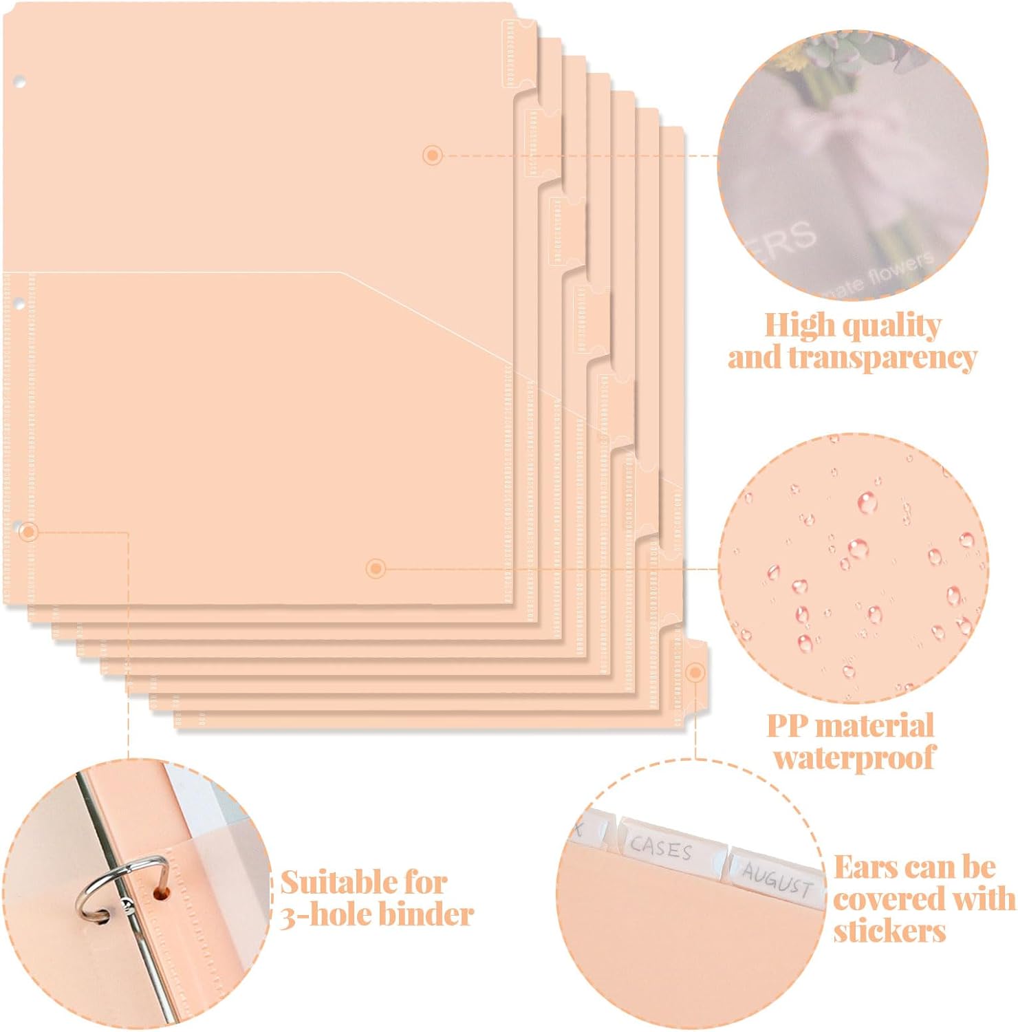 - 【Clear Front Inclined Pocket】Each plastic dividers features an inclined front pocket, are the perfect way to store loose papers in your 3-ring binder divider, and the semitransparent design also offer clear and easy browsing.