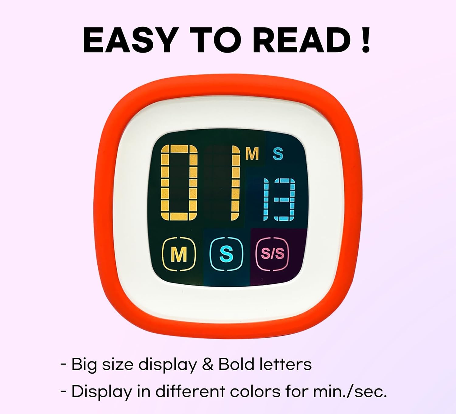 - 【 Easy to read 】 This digital timer features 2.35 inch Large Screen, bold colored digits for Minutes & Seconds and a Bright backlit display. It makes easy to capture the time clearly even from a distance. Especially recommended for kids & seniors.