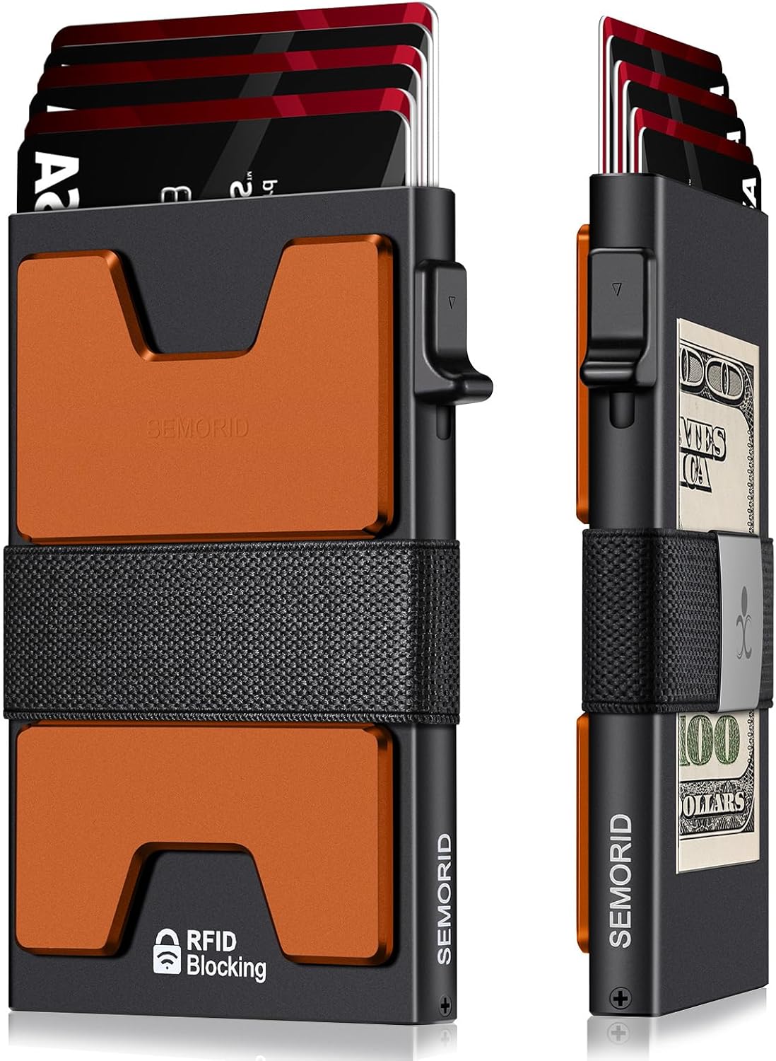 - 💳 ULTRA THIN PROFILE (SLIM WALLET FOR MEN): The minimalist tactical wallet is very thin and can be carried comfortably in a pocket. The aluminum cardholder size is 3.9*2.5*0.5in,weight only 2.6oz. And expandable backplate designed for additional storage. Ditch the bulk, less is more.