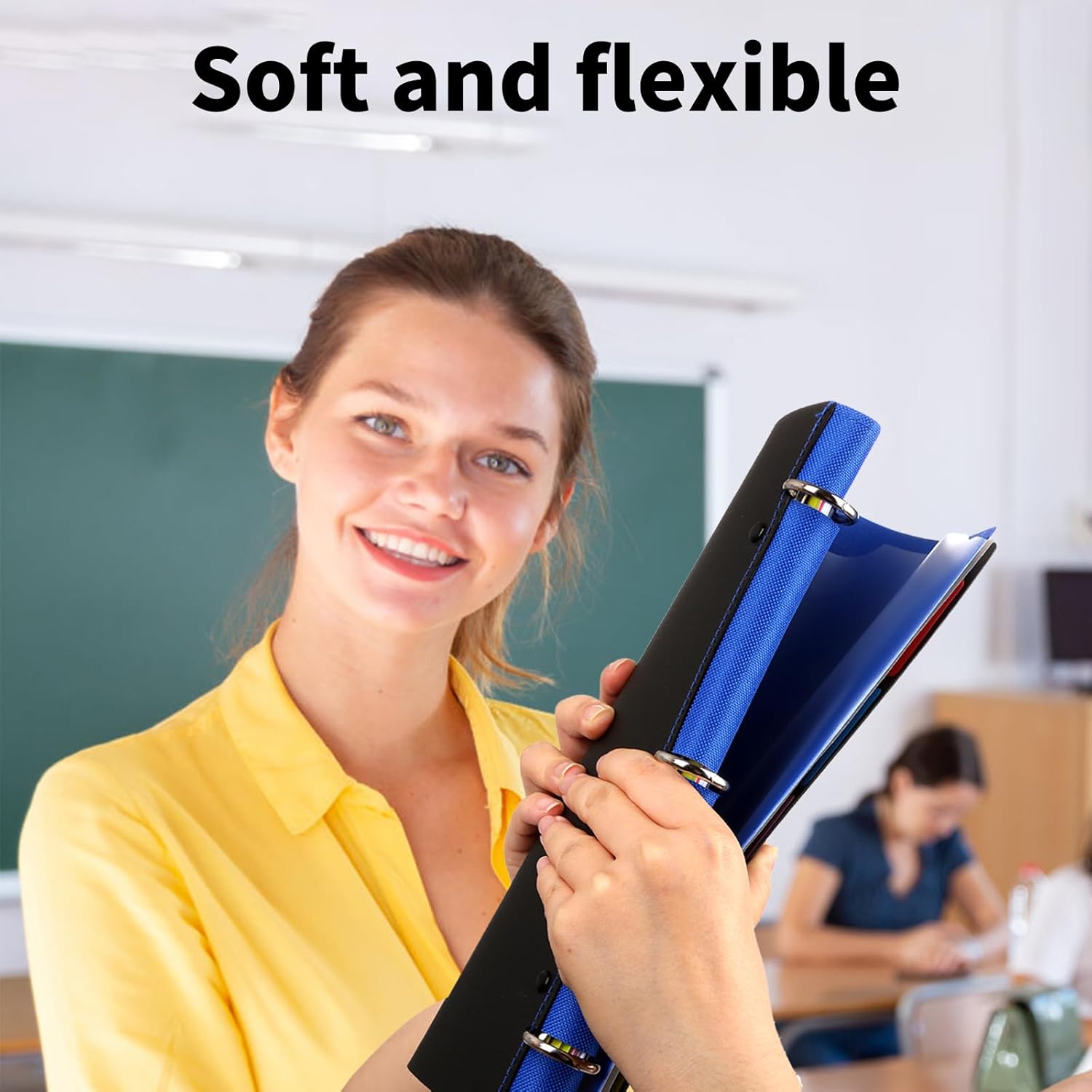 Pivotable Refillable Notebook, 1 Inch 3 Ring Notebook Binder, 100 College Ruled Paper, 5 Subject Notebook with Dividers and Folder Pockets, Tabs- Blue