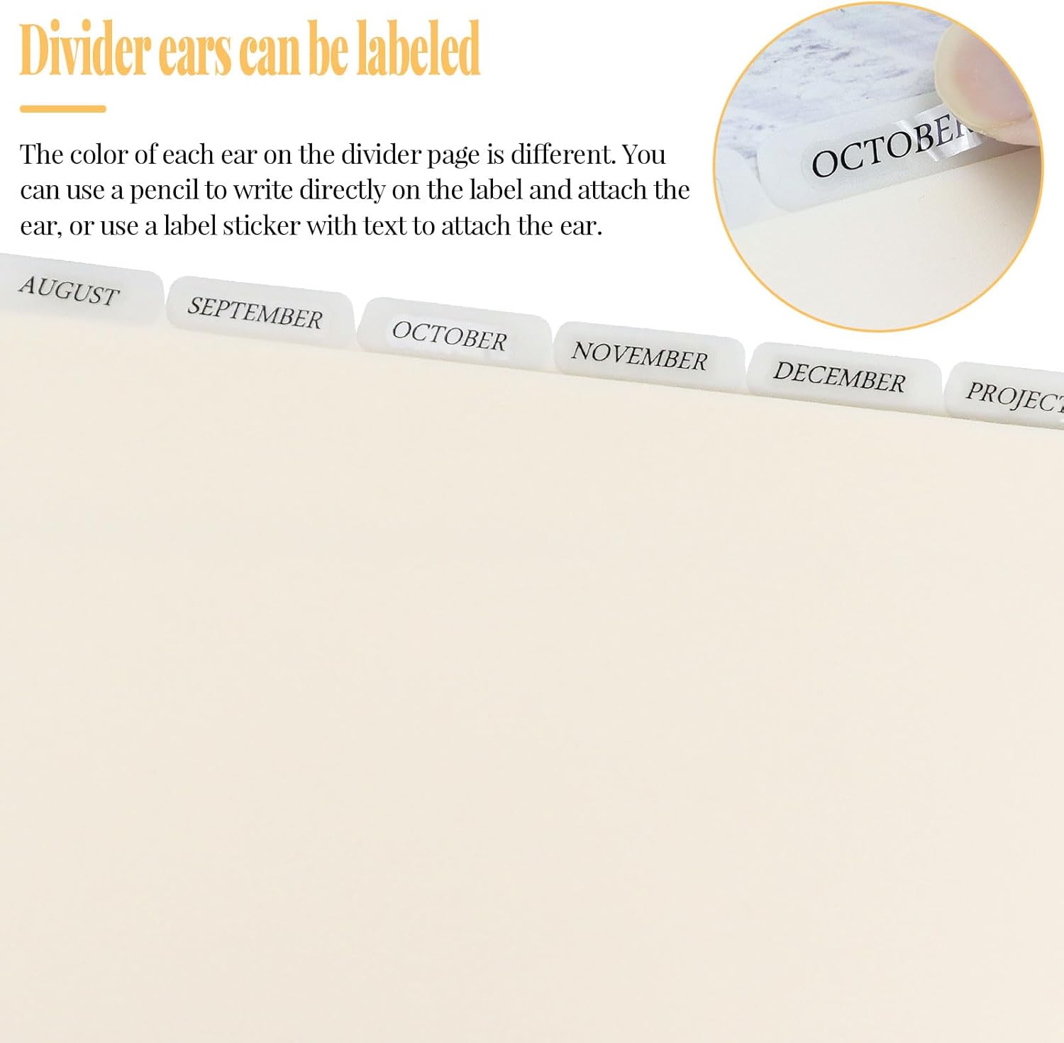 - You can write down notes with ballpoint pen or pencils on tabs or file separators, then wipe off easily with household detergent or eraser.