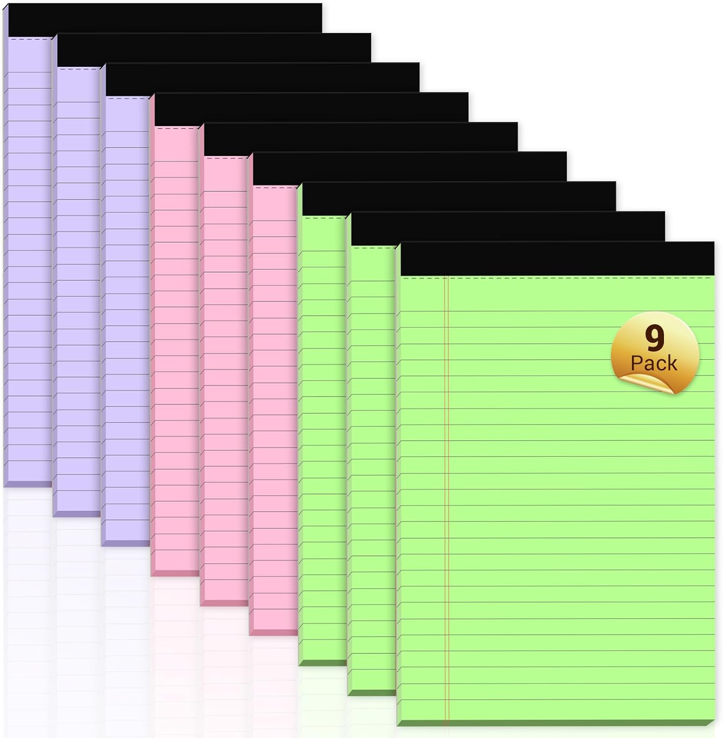- 【Size & Quantity】The overall dimension of each mini legal pad is 5" x 8" . Narrow ruled 9/32 inch line spacing for writing more notes on each sheet. You will get 9 pack of legal pads 5x8 colored, 3 of each pastel color (Pink, purple, and Green), each 5x8 lined paper pads includes 30 sheets, there are a total of 270 sheets to meet your daily usage and replacement. These Legal note pads 5x8 colored perfect for writing notes, letters, thoughts and lists.