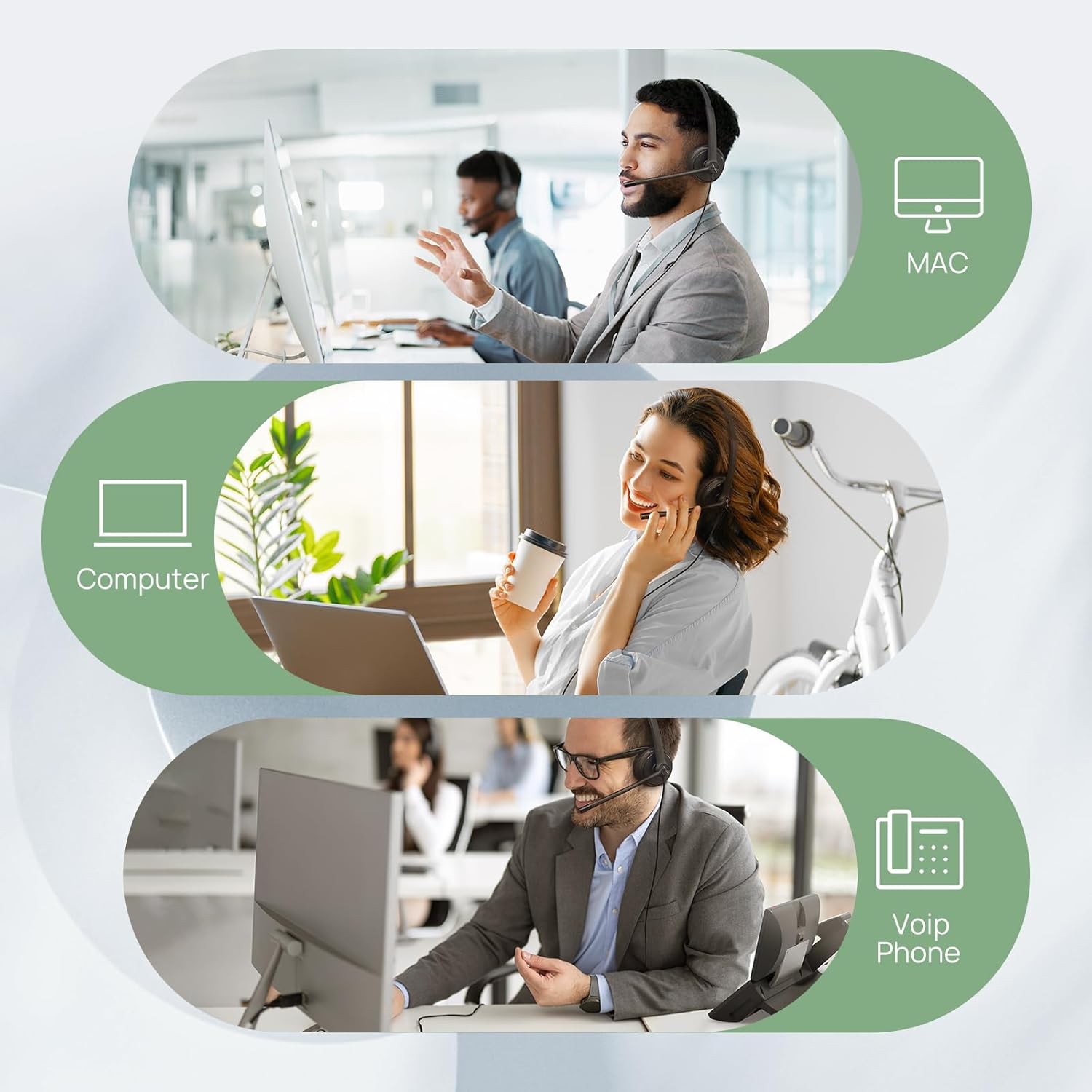 - Noise Cancelling Microphones: The office headset features built in noise canceling microphones that block out background noise in noisy environments. This allows you to conduct meetings with clarity, making it feel as though you are having a face-to-face conversation with remote participants, ensuring clear communication.