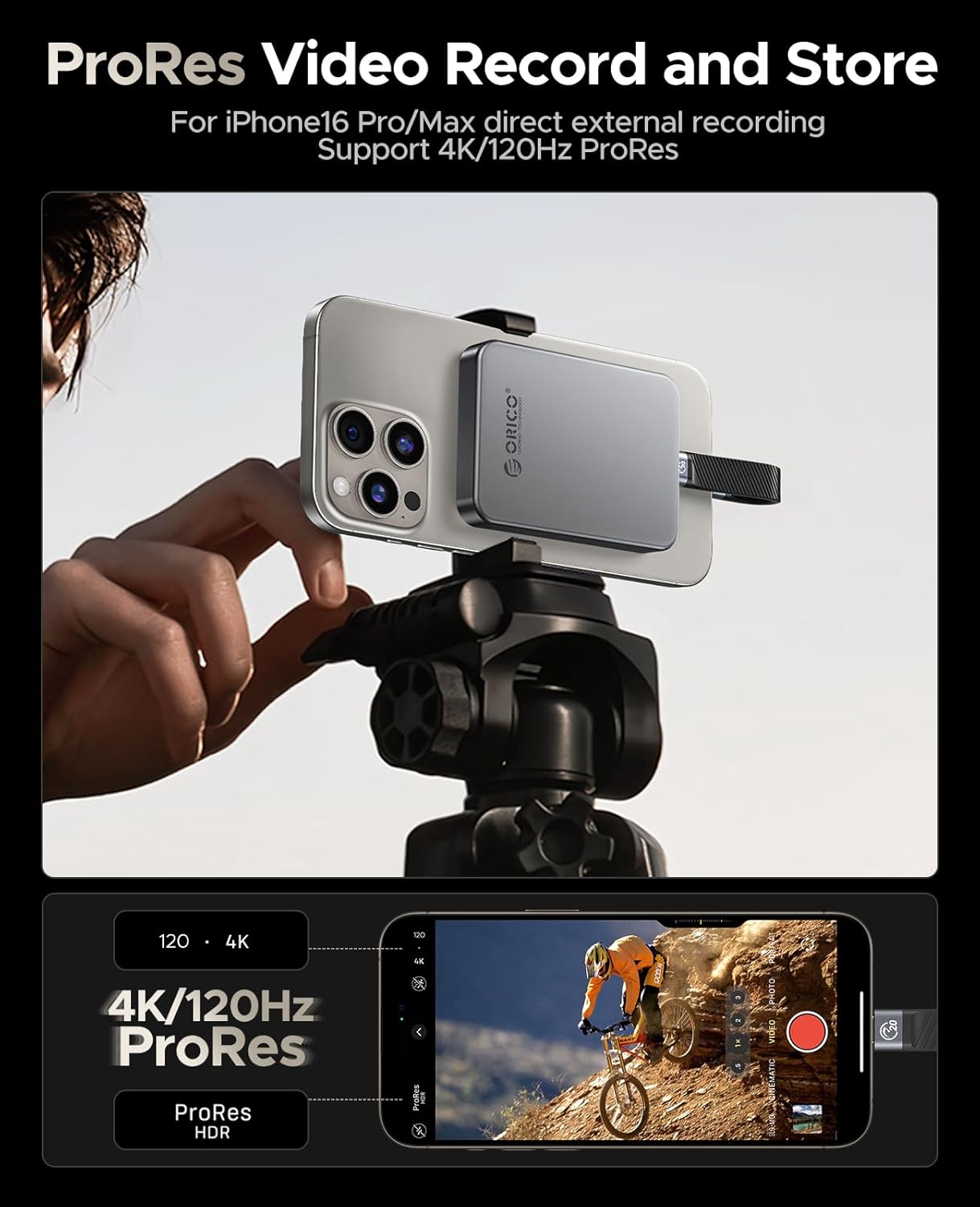 - 4K 120 fps ProRes: ORICO K20 external solid state drives supports 4K 120 fps ProRes HDR video recording of iPhone 16 Pro/Pro Max. Save as you record, edit on disk, no need for a second transfer