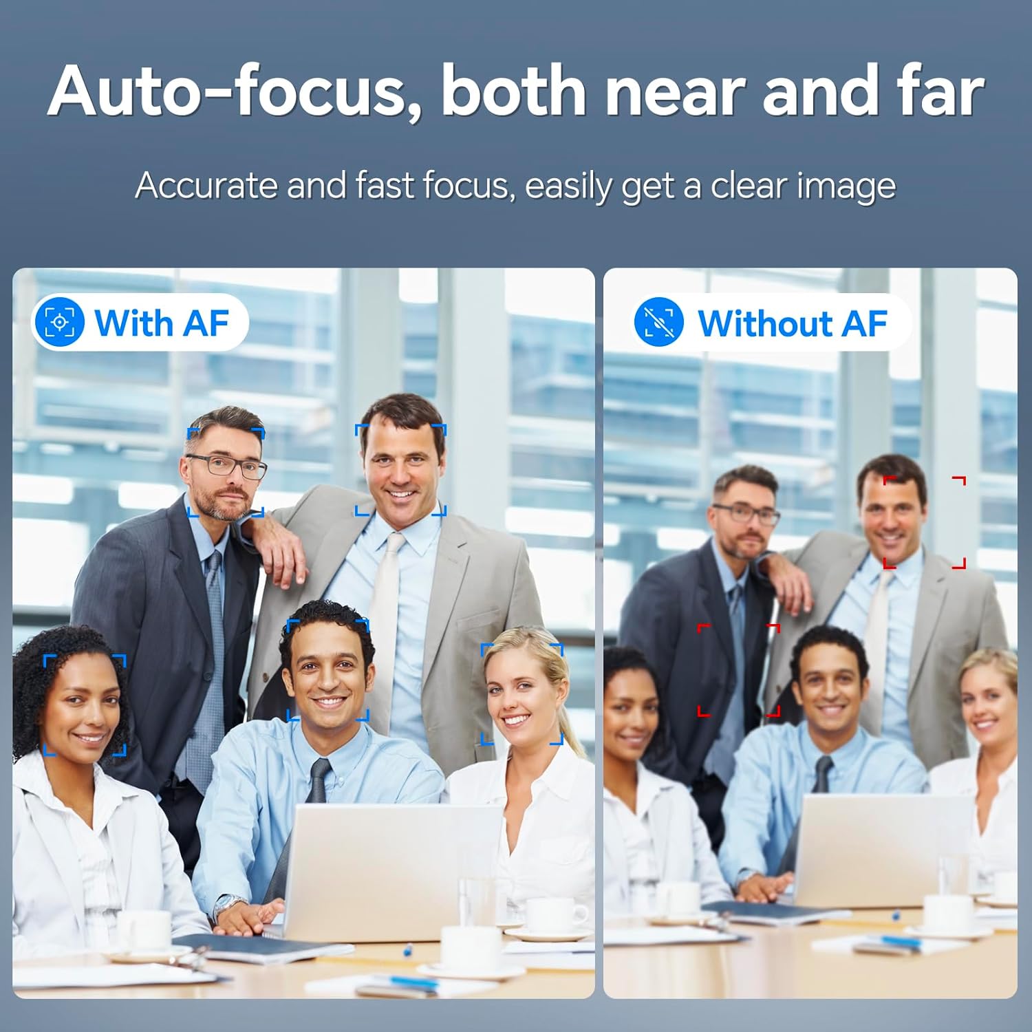 - High-Quality Video: This 4K AF webcam for pc captures crisp, ultra-high definition video at up to 4K resolution for exceptional clarity during video calls and recordings