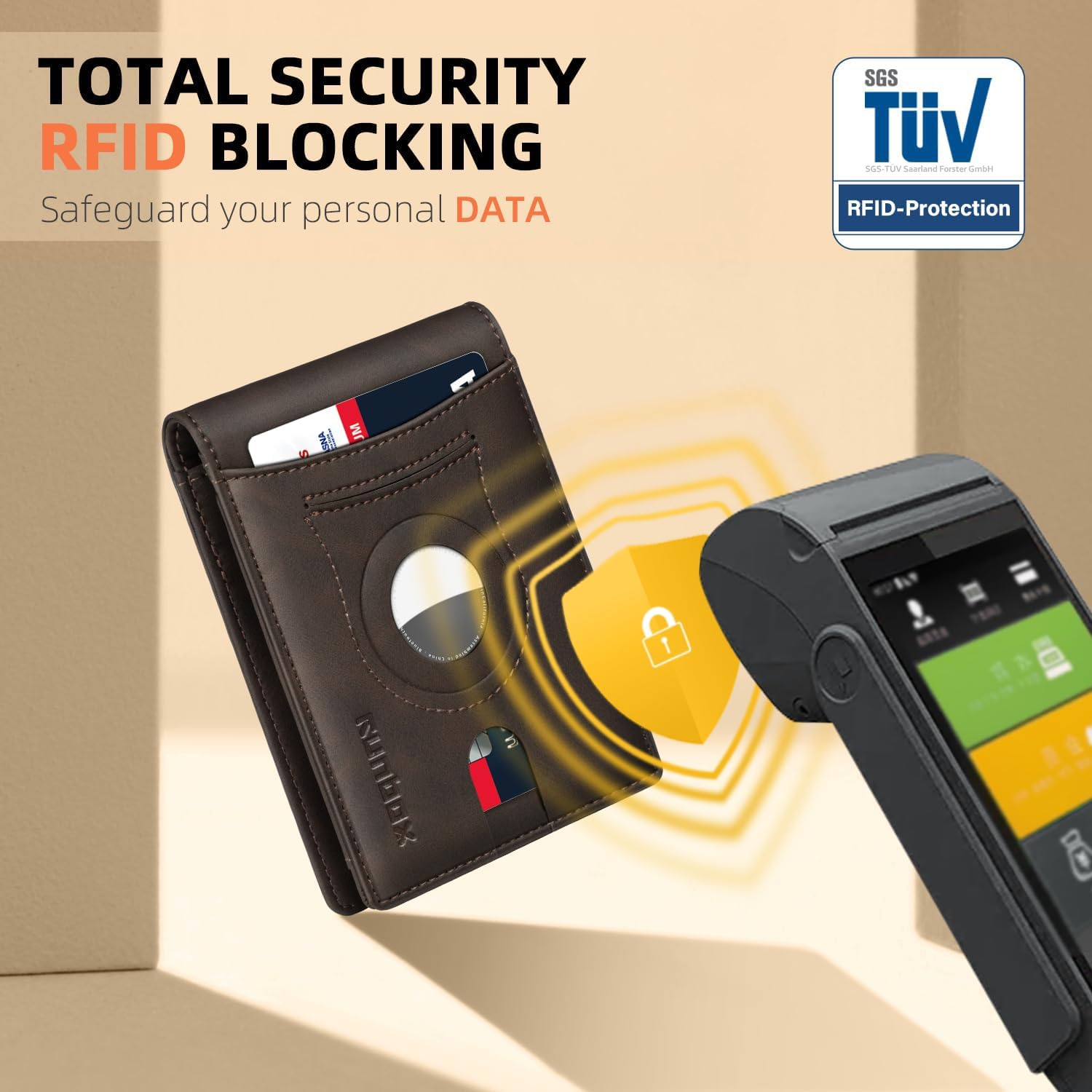 - RFID ANTI-THEFT FUNCTION - This wallet for AirTag boasts RFID blocking shield technology, safeguarding your personal and financial data against unauthorized scanning and identity theft. Enjoy peace of mind knowing that your information is safe and secure