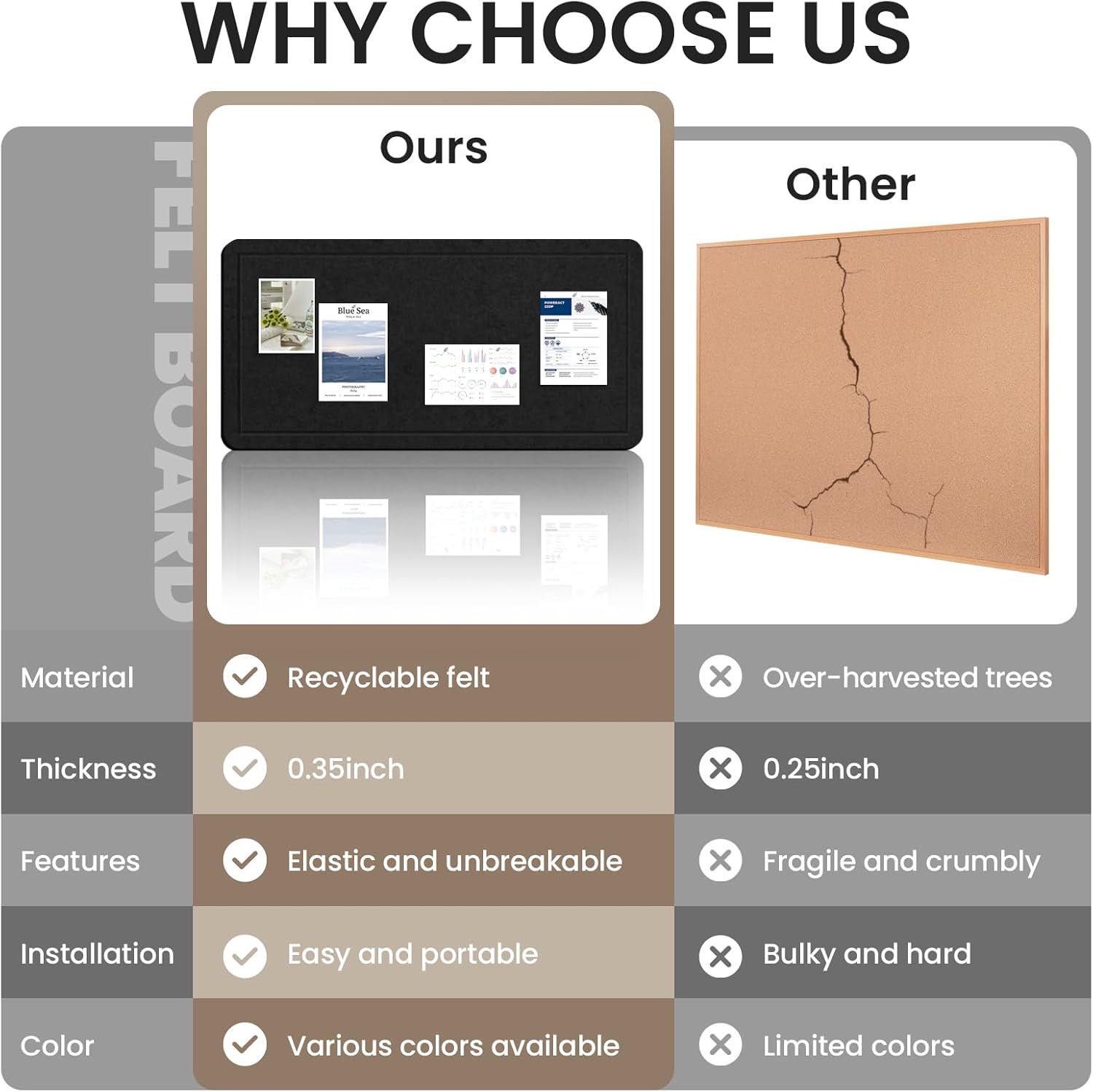- Customizable Design: Tailor your tack board experience with our large cork board alternative. Each package includes 1 high-density felt panel +40 Bonus Pushpins. We offer round-the-clock customer service for any questions or concerns, please feel free to reach out to us if you need help.