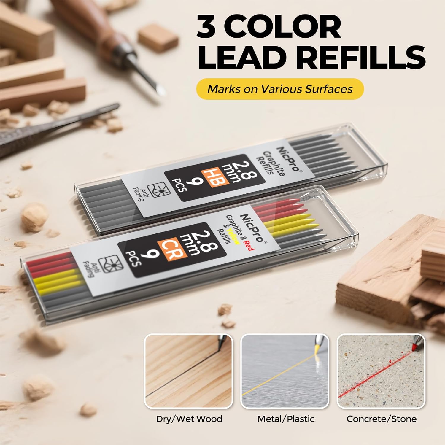 - Marks on Various Surfaces: This work pencil is matched with a 2.8 mm thick color lead, It can mark on almost all surfaces whether dry, damp, smooth, rough or dusty. Making it a standout choice for woodworkers, electricians, and other tradespeople