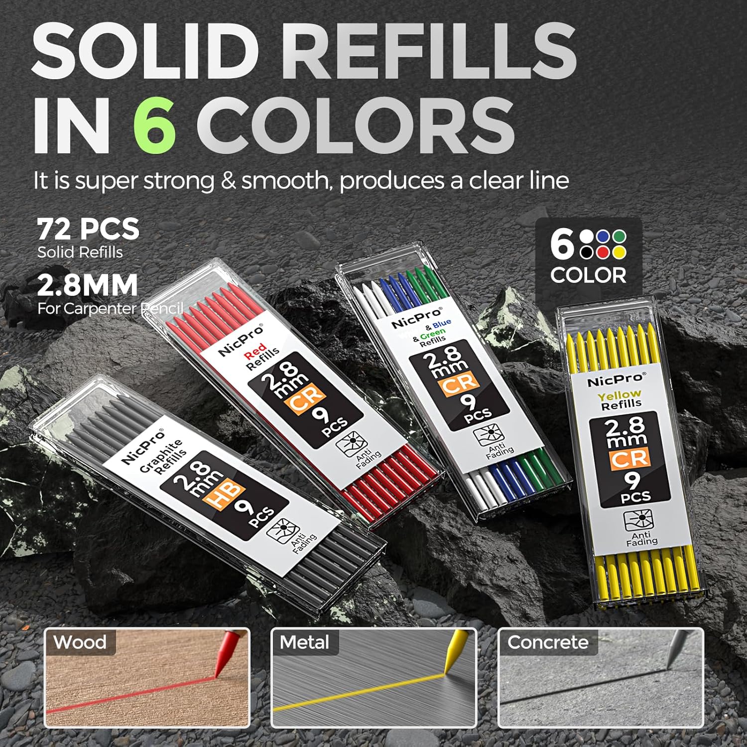 - Marks on Various Surfaces: This work pencil is matched with a 2.8 mm thick color lead, It can mark on a variety of surfaces, including rough, smooth, dry, and wet materials like wood, metal, plastic, and concrete. Making it a standout choice for woodworkers, electricians, and other tradespeople