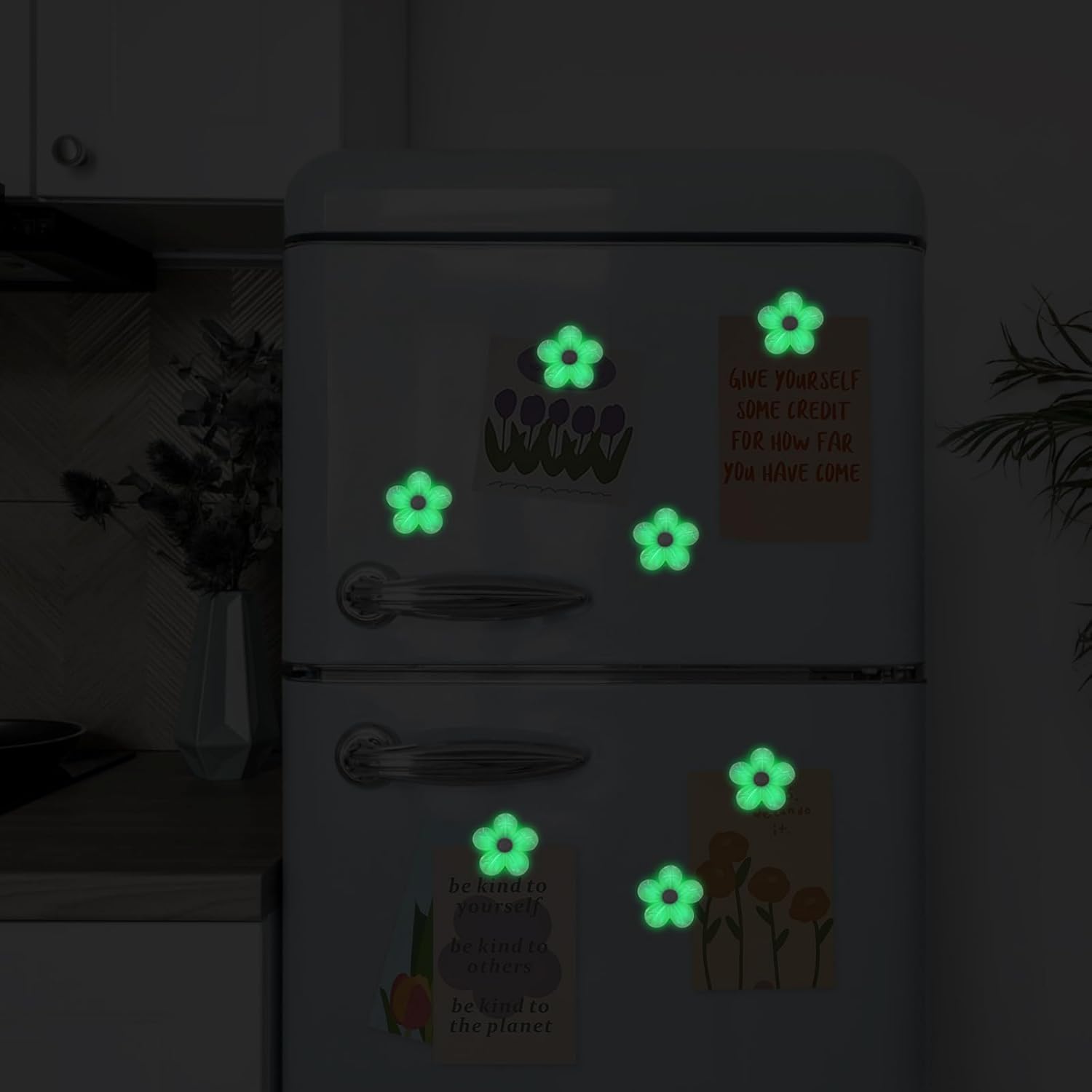 Qualsen Fridge Magnets Refrigerator, 12 Pcs Cute Decorative Flower Magnets for Refrigerator, Whiteboard, Locker, Kitchen, Classroom(Glow)