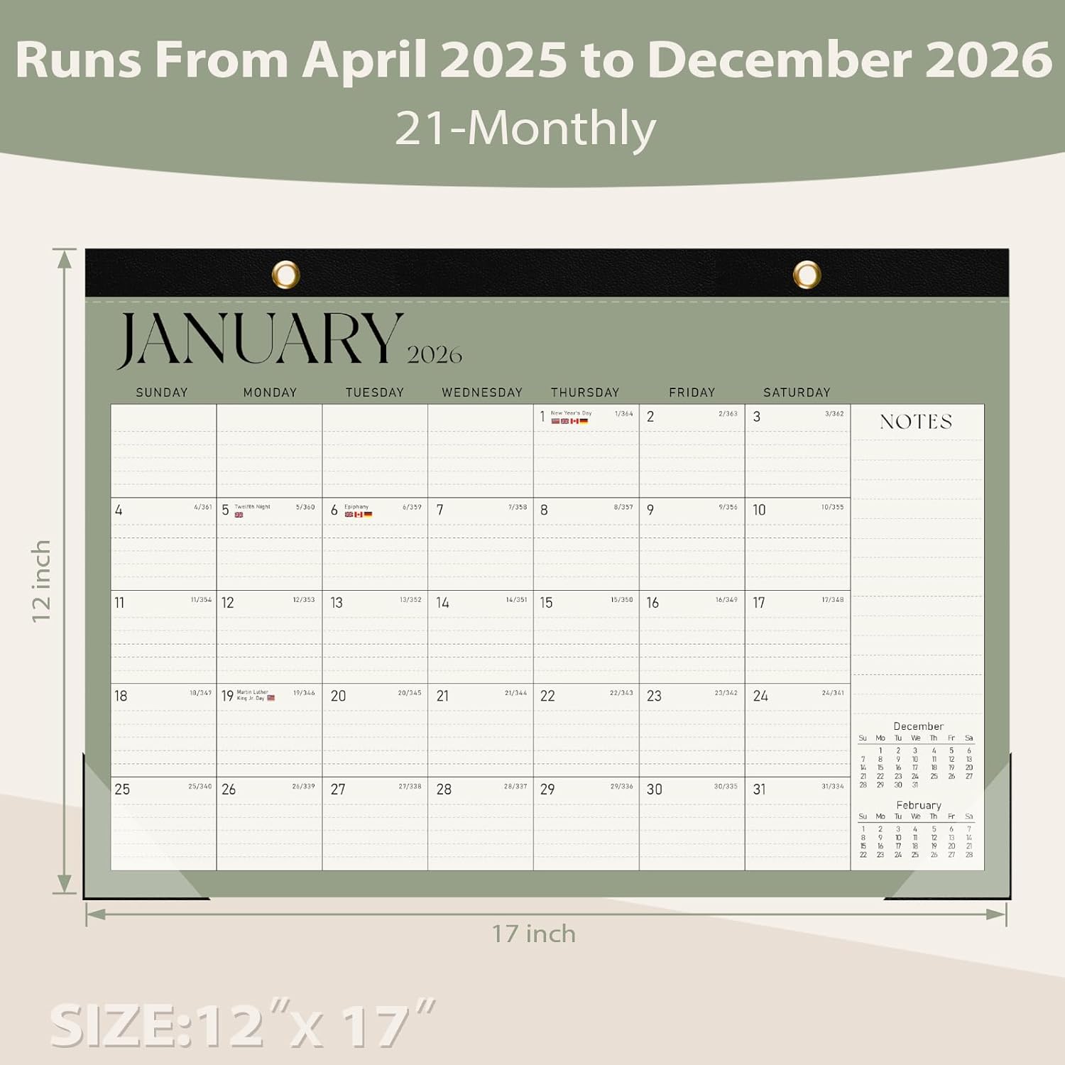 - [PERFECTLY SIZED FOR PLANNING] – Measuring 17" x 12", the 2025-2026 desk calendar offers ample space for notes, appointments, and reminders while fitting neatly on your desk or wall. A dedicated notes section helps keep memos, goals, and to-do lists organized in one place.