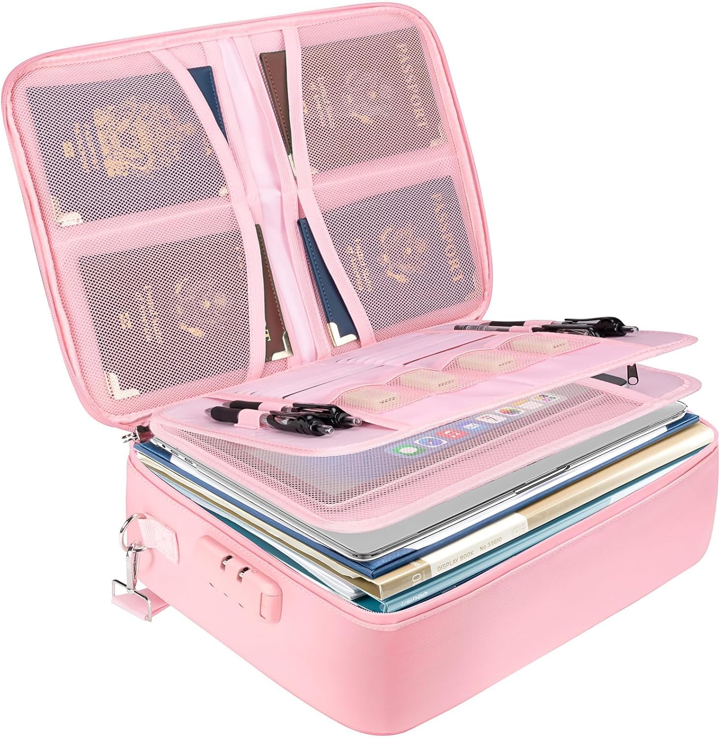 - Large Capacity: Available in three sizes, the large document box (16''x12.5''x11.5'') can hold legal-sized and letter-sized documents, the medium document box (12.5"x10.5"x6") is fit for letter size files, and it includes mesh pockets of various sizes; The smaller document bag (15''x11''x4'') features a three-layer design with 12 mesh compartments of different sizes