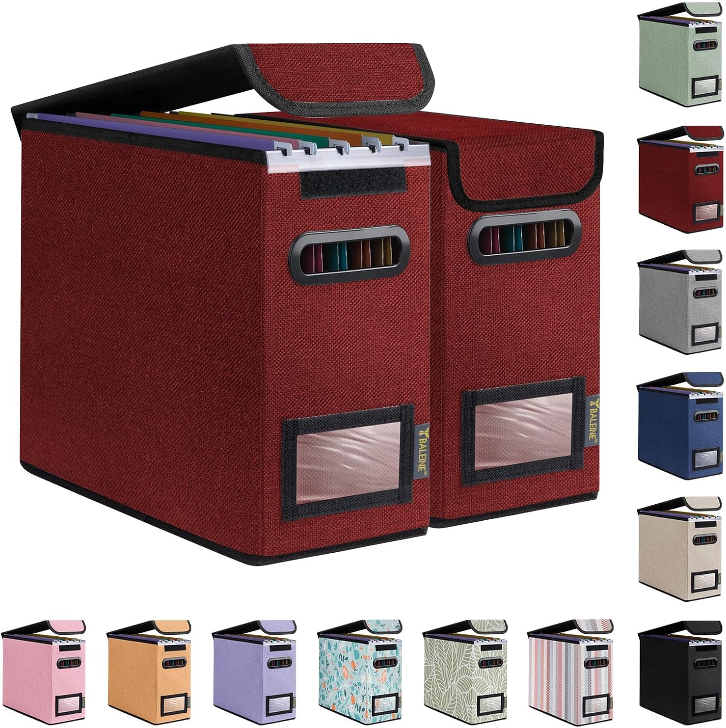 BALEINE File Organizer Box with Lid, Collapsible File Folder Organizer with Plastic Slide, Hanging File Folder Box for Office Document Storage (2 Pack, Red, S)