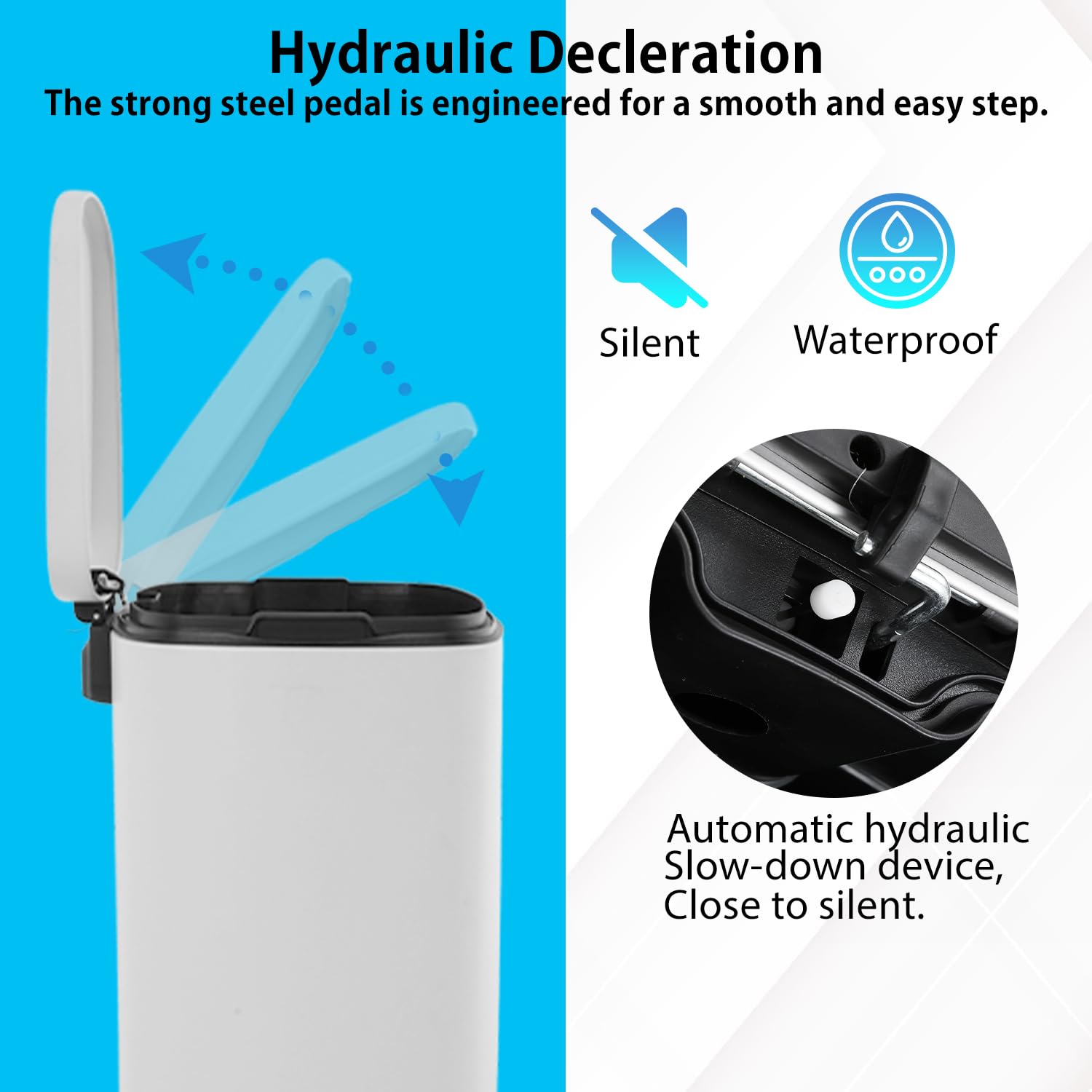 PayLessHere Stainless Steel Trash Can with Lid - Removable Inner Bucket, Foot Pedal Soft Close for Office, Home, Kitchen (White, 13 G)