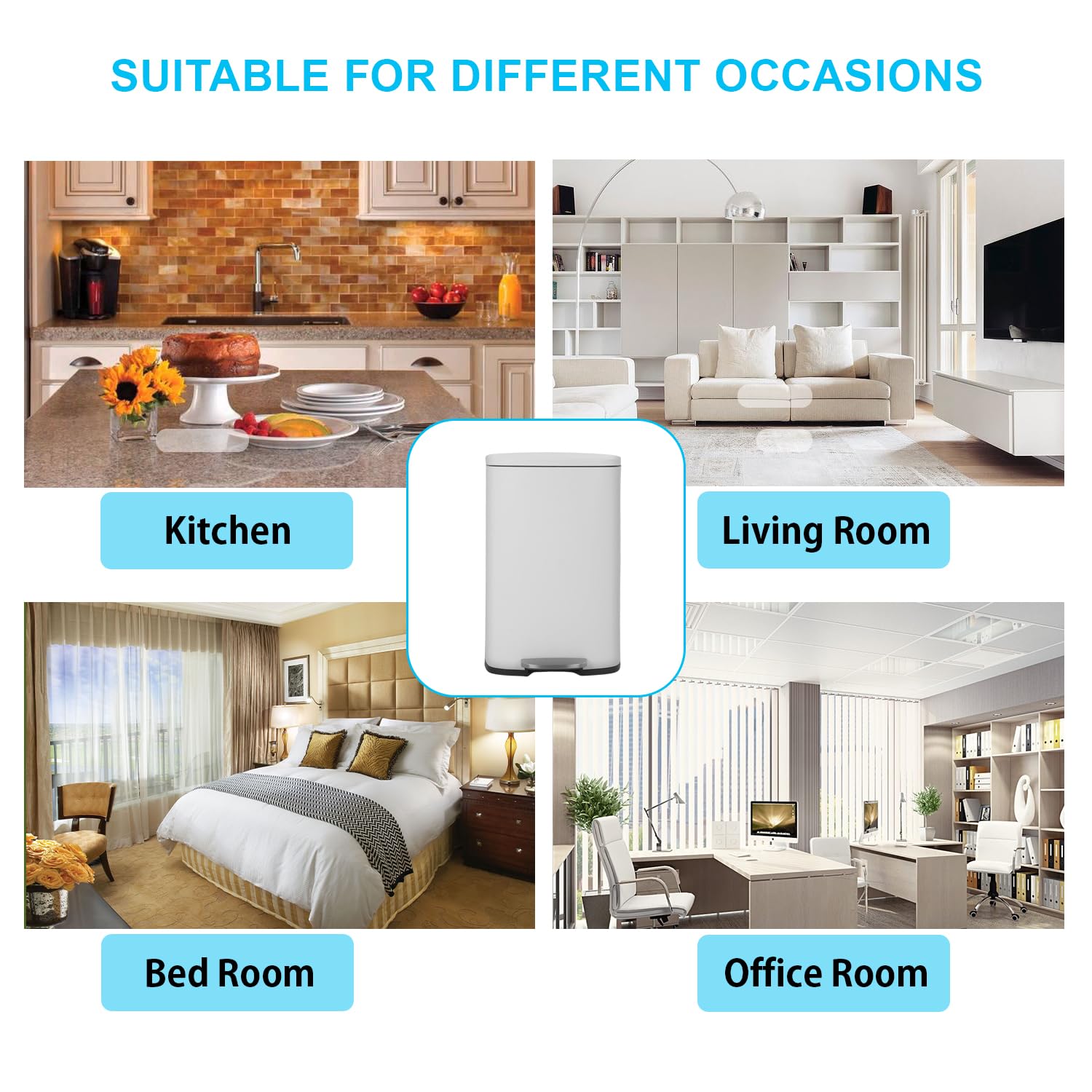 - 13 Gallon Ultra-large Capacity: 13 gallons can absolutely meet your daily use, in the kitchen table next to a kitchen trash can, you will be more convenient to deal with kitchen waste. The regular 13-gallon garbage bag in the supermarket can be used in our stainless steel trash can, and it's kind of you to use a bigger bag. The lid of the garbage can is removable, it’s convenient for you to put in and take out the garbage bag.step trash can kitchen trash can bedroom trash can