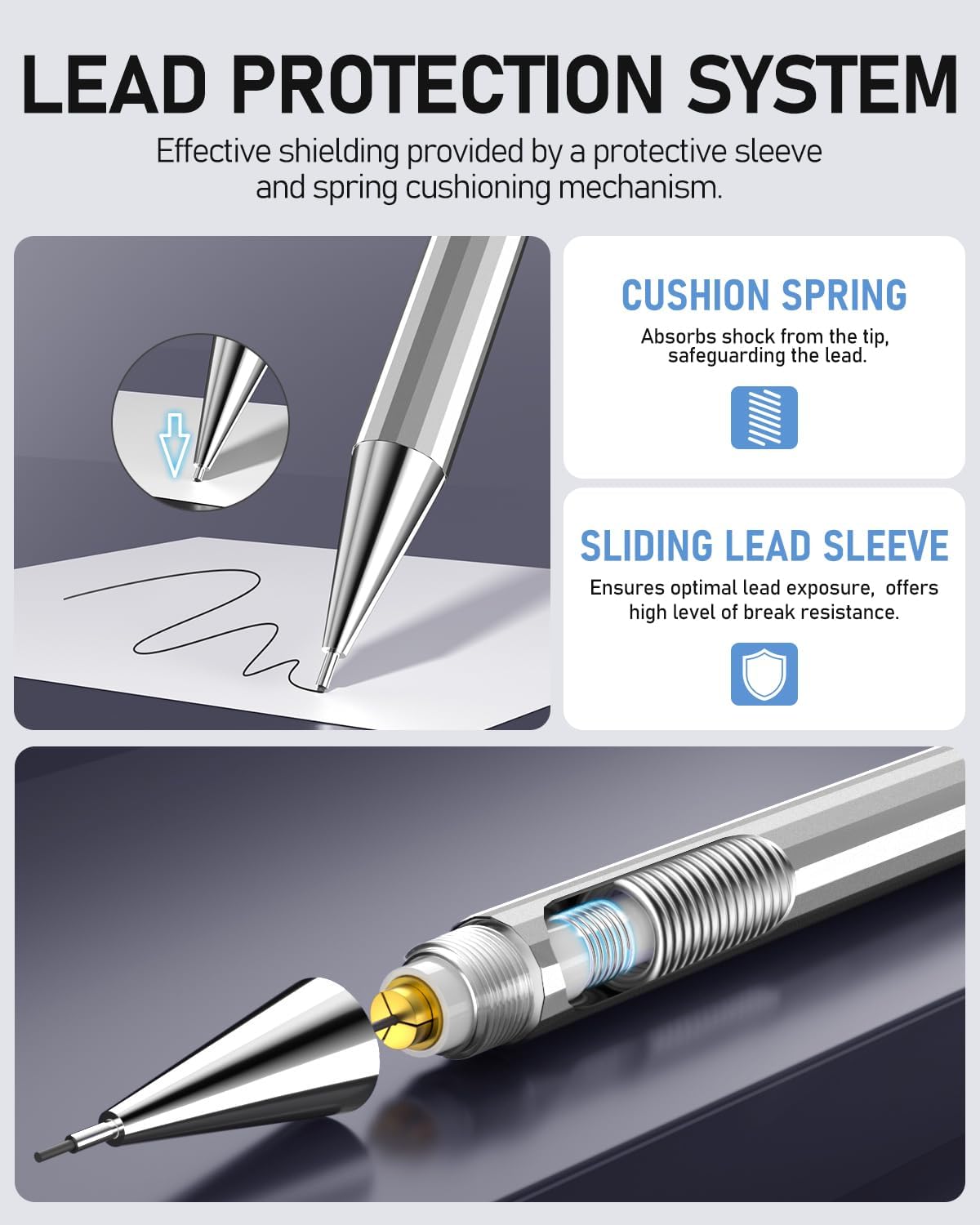 - Metal Mechanical Pencil: The smooth barrel of the mechanical writing pencil has a comfortable feel, and the metal body provides the ideal weight balance for more efficient and fatigue-free writing and drawing