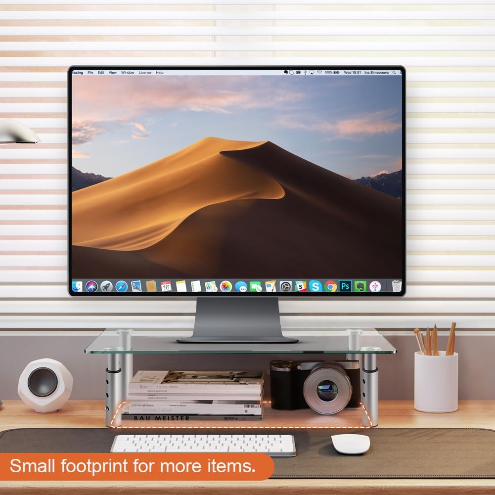 KKTONER GLASS Monitor Stand with Height Adjustable for Home Office 2 Pack Computer Monitor Riser PC Screen Riser for Desk Organzier Laptop