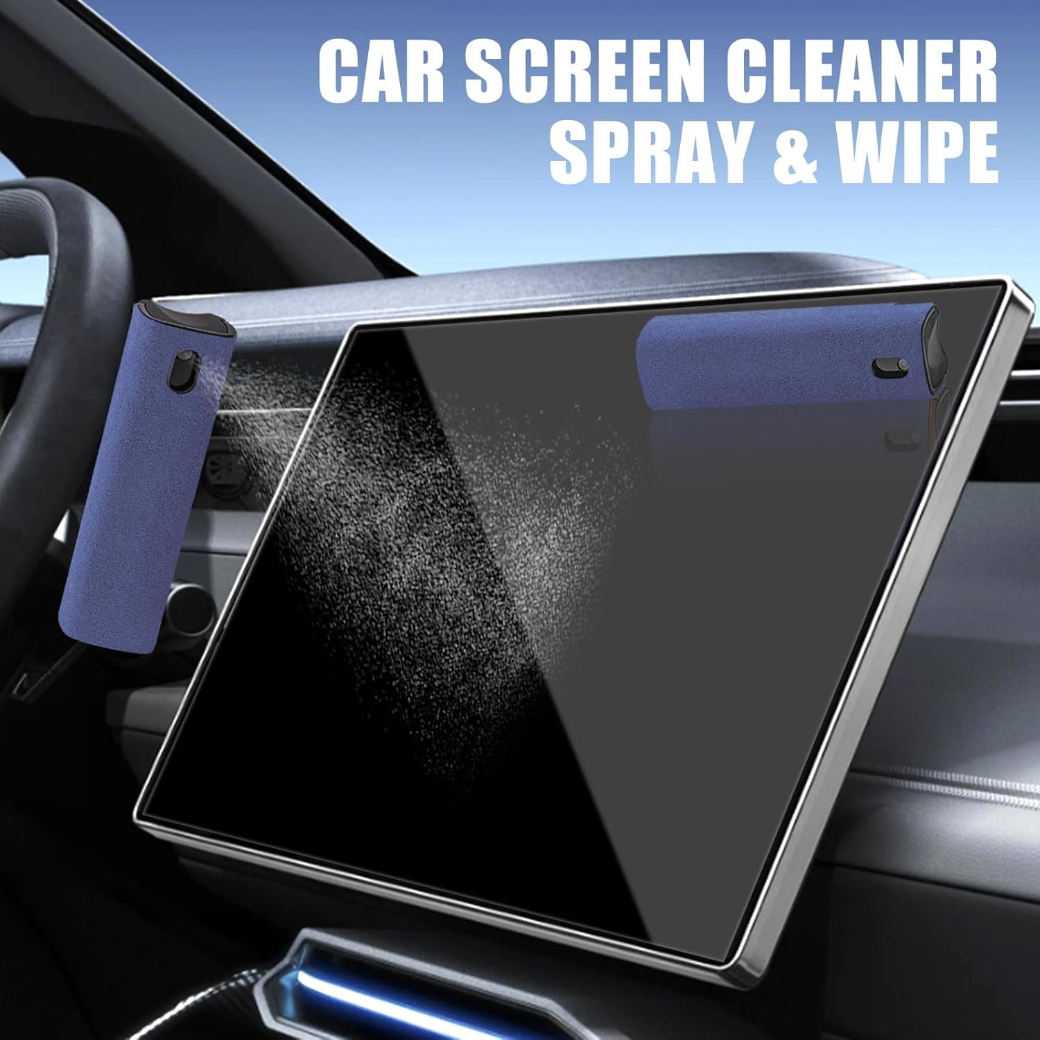 walrfid Car Screen Cleaner Spray and Wipe, Laptop Touchscreen Mist Cleaning Kit for Electronics Computer, iPad, Cellphone, MacBook, TV, Monitor, Tablet Display, with Black Graffiti Case - Dark Blue