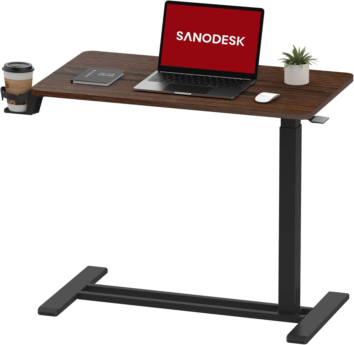 SANODESK Mobile Standing Desk with Hidden Wheels,Pneumatic Laptop Desk Rolling Computer Cart Movable Height Adjustable Small Sit Stand Desk for Home Office(31.5" W x 17.7" D,Black Walnut)