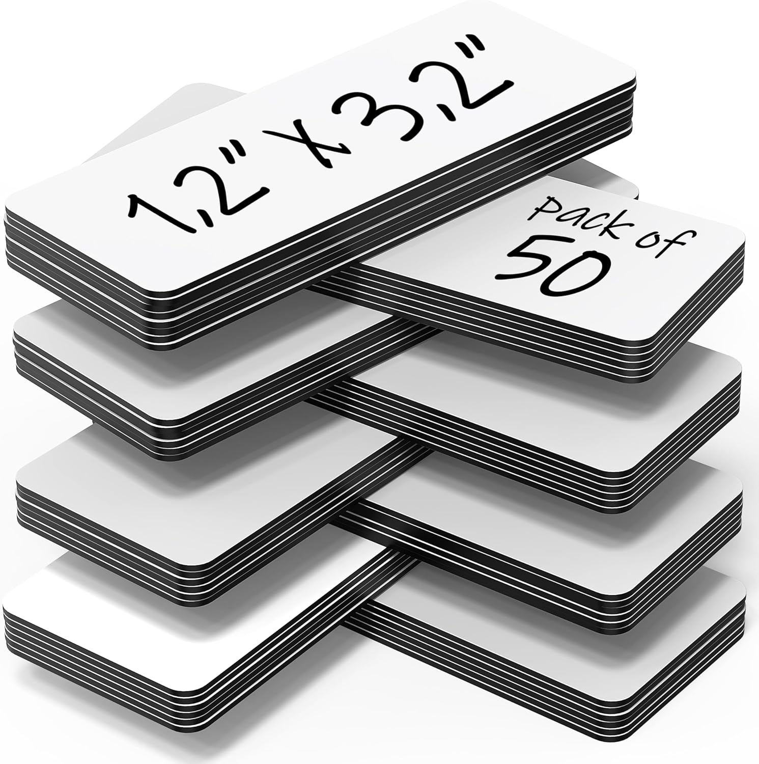 - Package Includes - 50 pcs of dry erase labels magnetic 3.2x1.2 in, great for identifying various items around classroom, house, office, or store, labeling, and sorting.