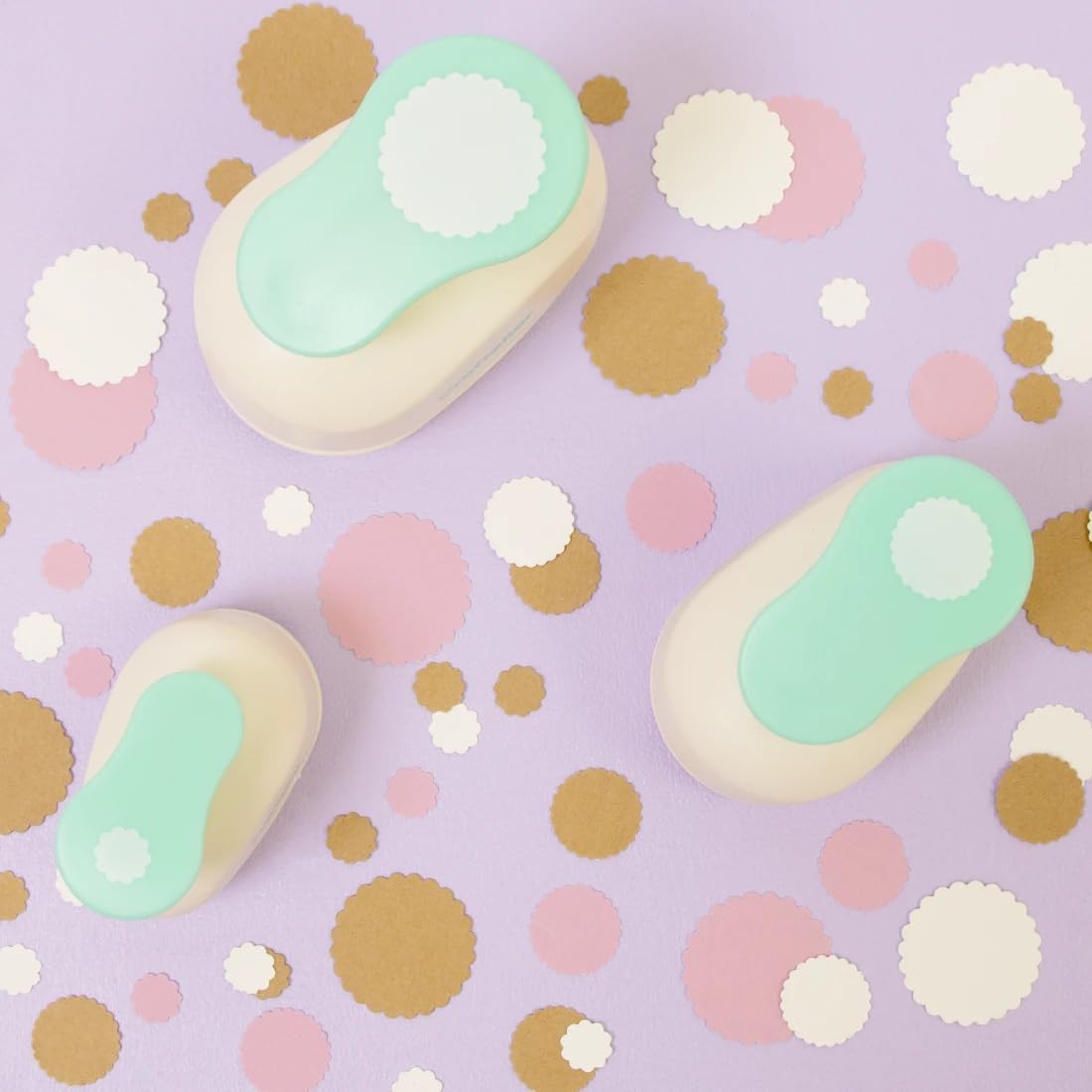 - 🕳️ CRAFT CIRCLE SCALLOP PUNCH SET: Includes 3/8" (0,95cm), 5/8" (1,58cm), and 1" (2,54cm) scalloped circle punches.