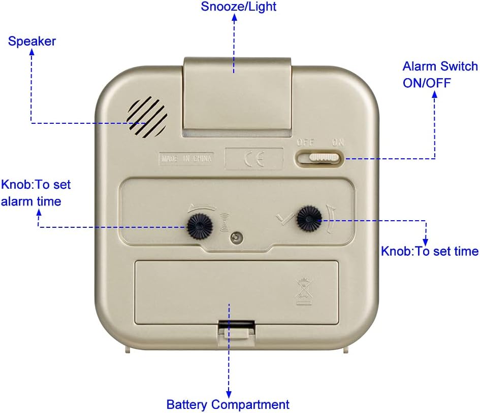 Small Battery Operated Analog Travel Alarm Clock Silent Non Ticking,Gentle Wake, Ascending Beep Sounds, Snooze,Lighted on Demand,Easy Set(Gold)