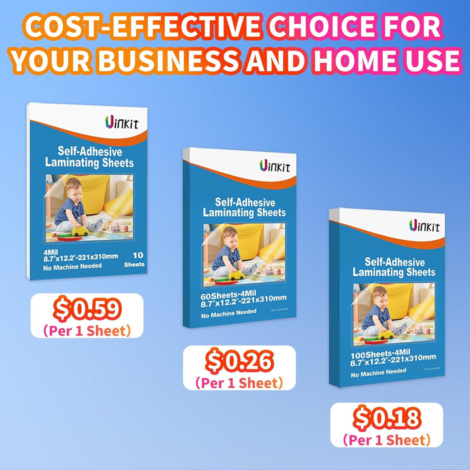 Uinkit 100PCS 4Mil Self-Adhesive Laminating Sheets, 8.7 x 12.2 Inches Clear Self Sealing Laminating Sheets, Suitable for 8.5 x 11 Inches Letter Size, No Machine Needed