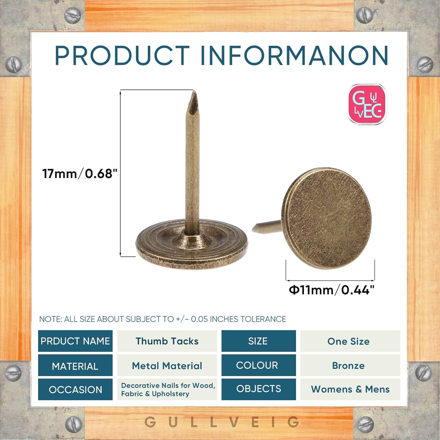 Gullveig Bronze Push Pins - 100 Piece Set in Elegant Metallic Finish - Durable Metal Thumb Tacks, Reusable Paper Box - Perfect for Home, Office, and DIY Projects - Ф11mm x 17mm