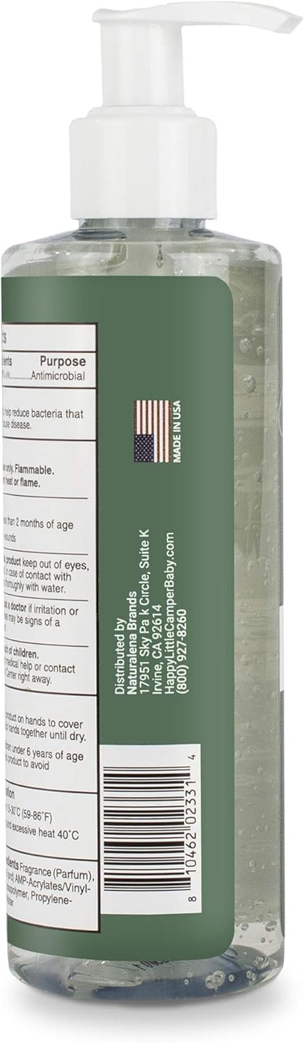 Happy Little Camper Hand Sanitizer with Lemon Zest Scent - Moisturizing Gel with Vitamin E & Antimicrobial Formula- Contains 70% Ethyl Alcohol - Travel Size, Made in USA - 2x 8oz bottles