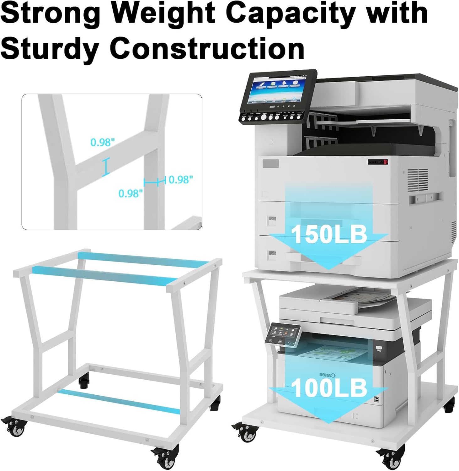 Natwind 2-Tier Large Printer Stand,23.6"x23.6"x29.5" Heavy-Duty Printer Table Cart with Paper Storage Shelf & Wheels,Ideal for Home Office Laser Printers, Copiers (White)