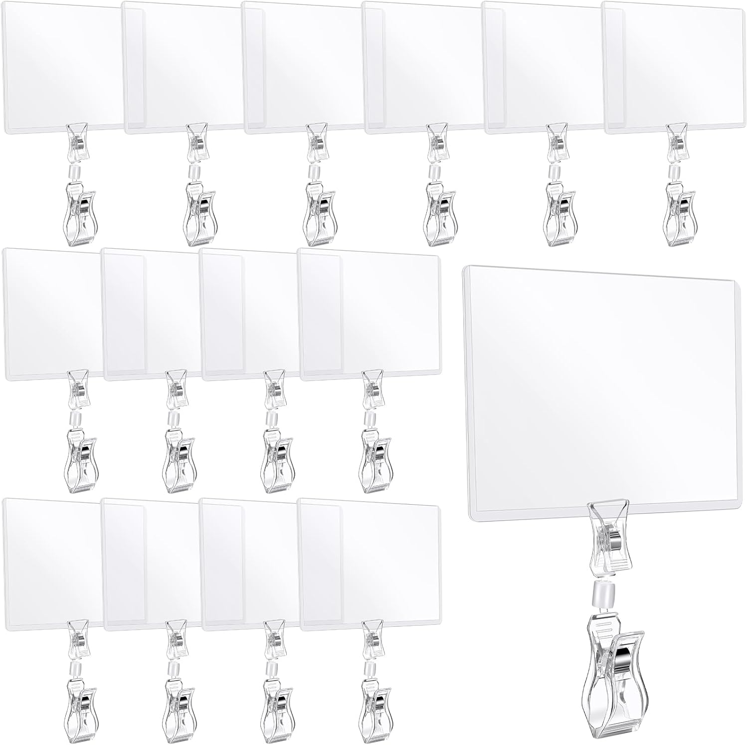 - Office Product Set: each kit contains 20 pieces transparent sign holders and 20 pieces card protectors, sufficient quantity to meet your daily use and replacement needs, more suitable for supermarkets, fruit stalls, clothing stores and other occasions where numerous sign holder clips are applied