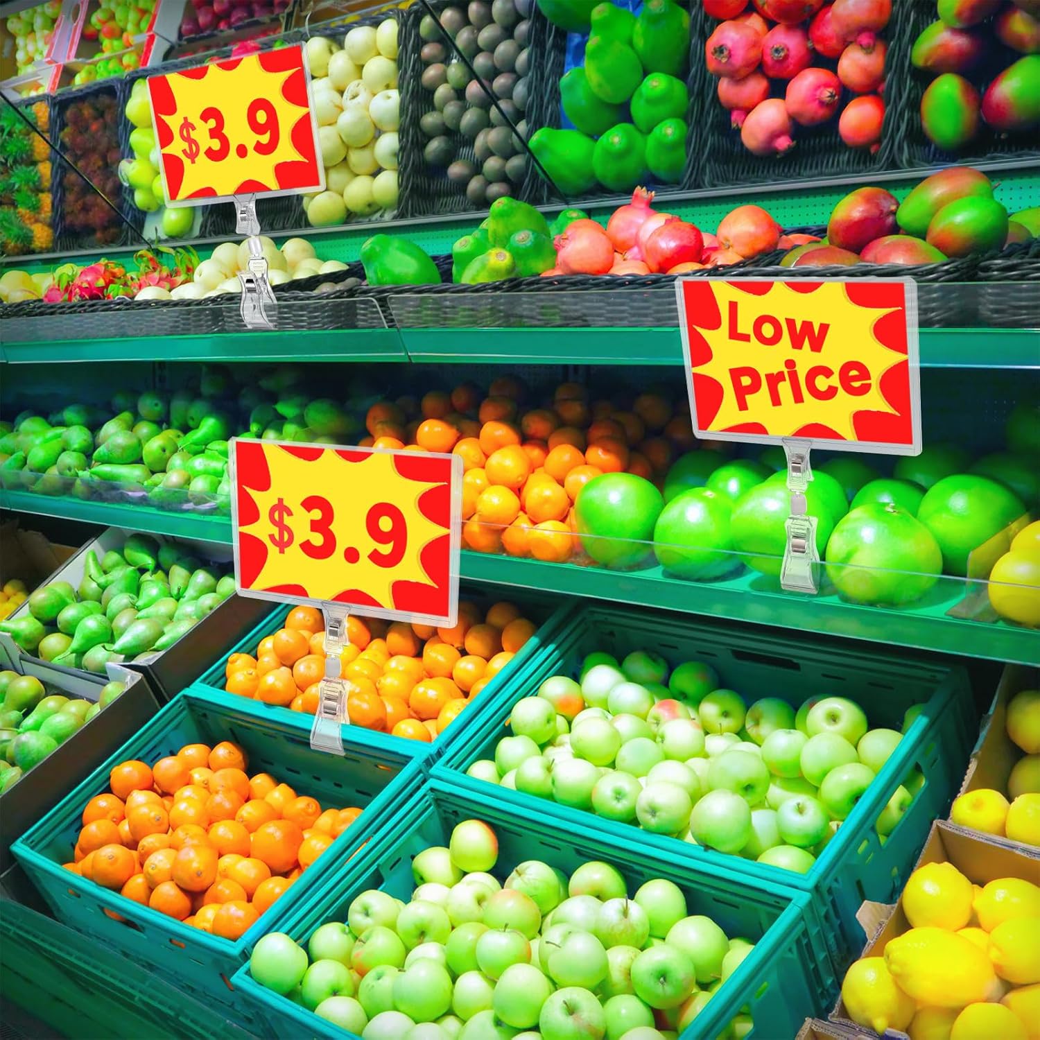 - Pop Clip Sign Holder: these merchandise sign clip is made from PC, strong clamping force, and can be fixed to the rack or shelf, rugged, reliable and easy to clean; In addition, tag clip is flexible and can be 90 degree or 360 degree bending and rotating logo to achieve complete display