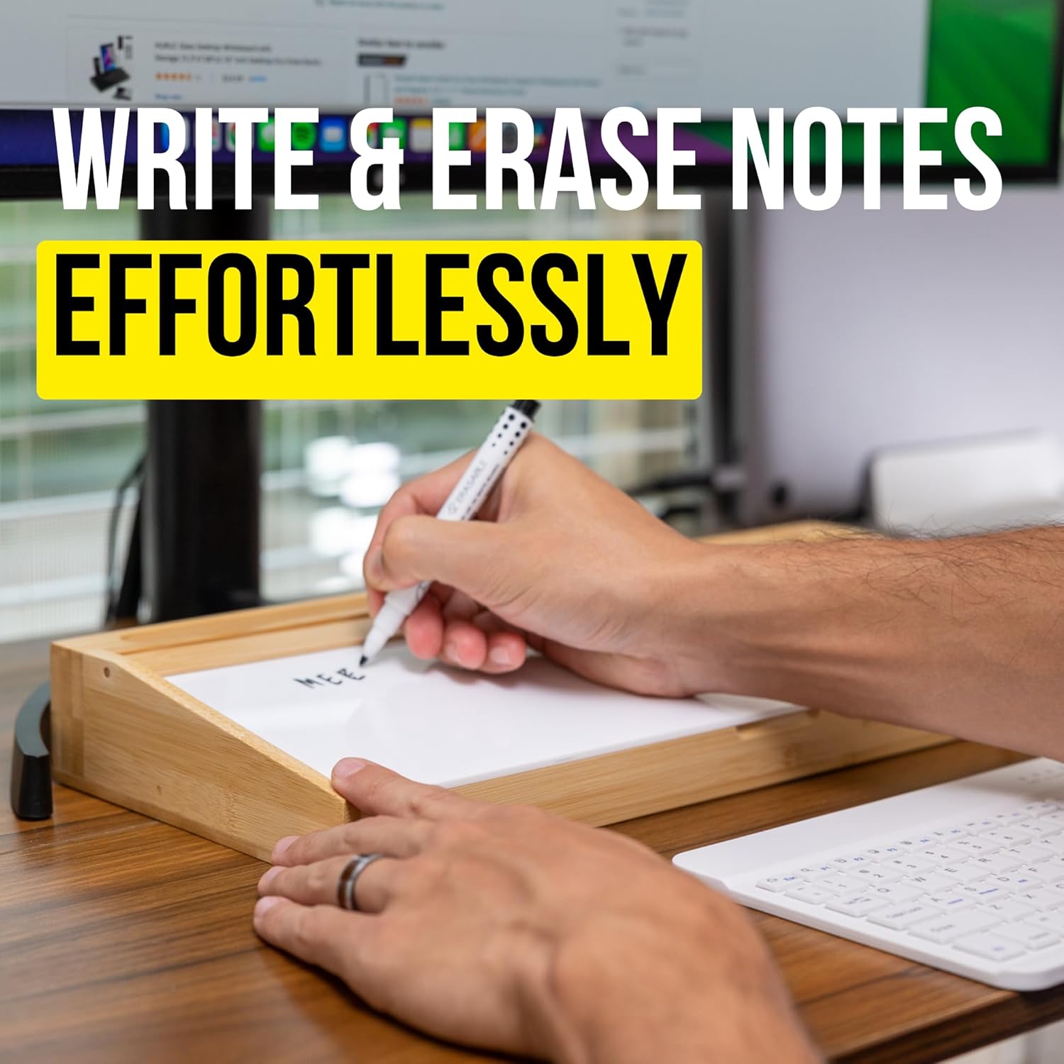 - Angled Acrylic White Board for Your Desk: Comfortable angle for better writing ergonomics. Included are 3 dry erase markers and eraser to write down and cleanly wipe any notes.