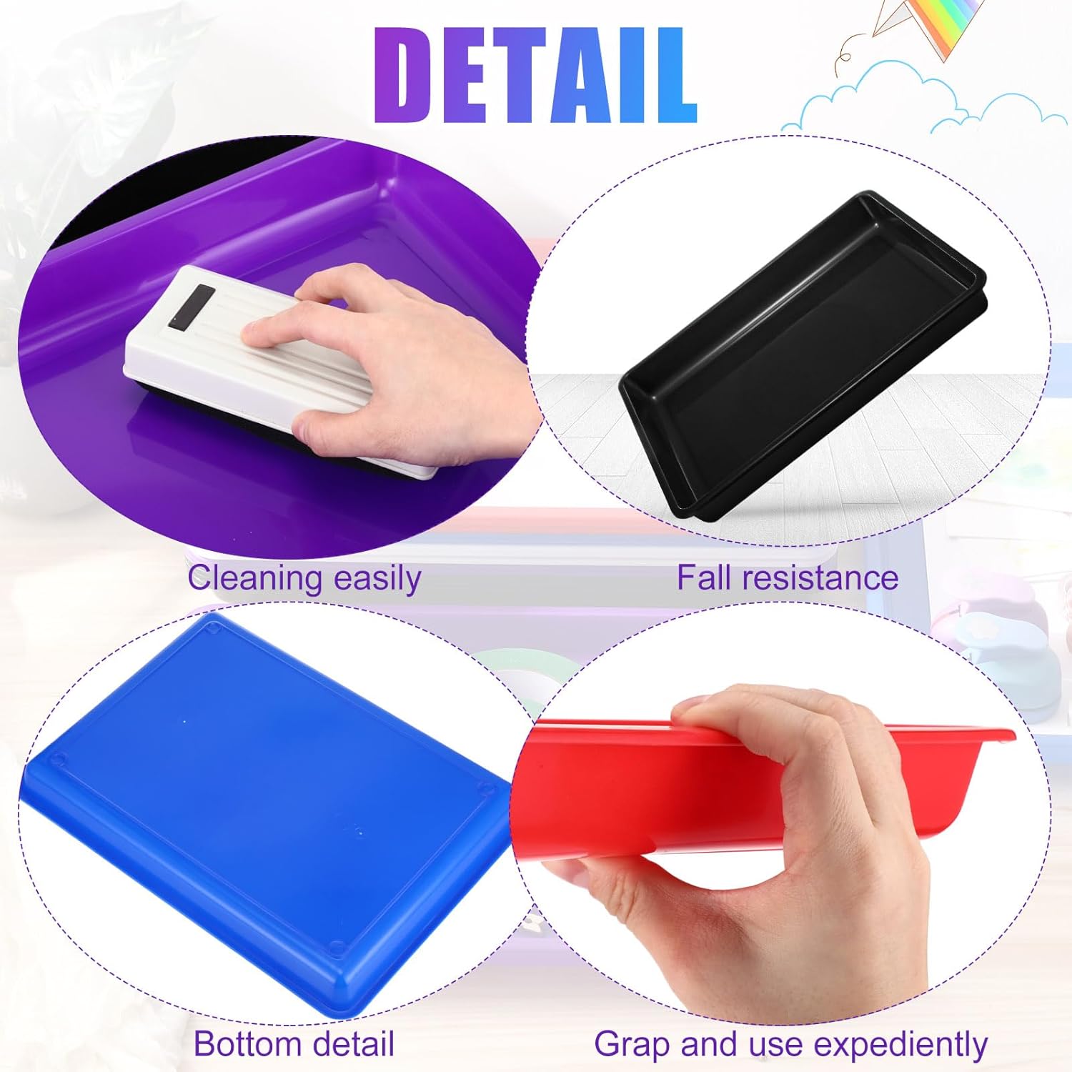 - Ample for Your Multiple Needs: you will receive 15 pieces of art trays in 5 different colors, respectively are purple, blue, green, yellow and red, 3 pieces of each color, adequate in quantity can satisfy your diverse using demands