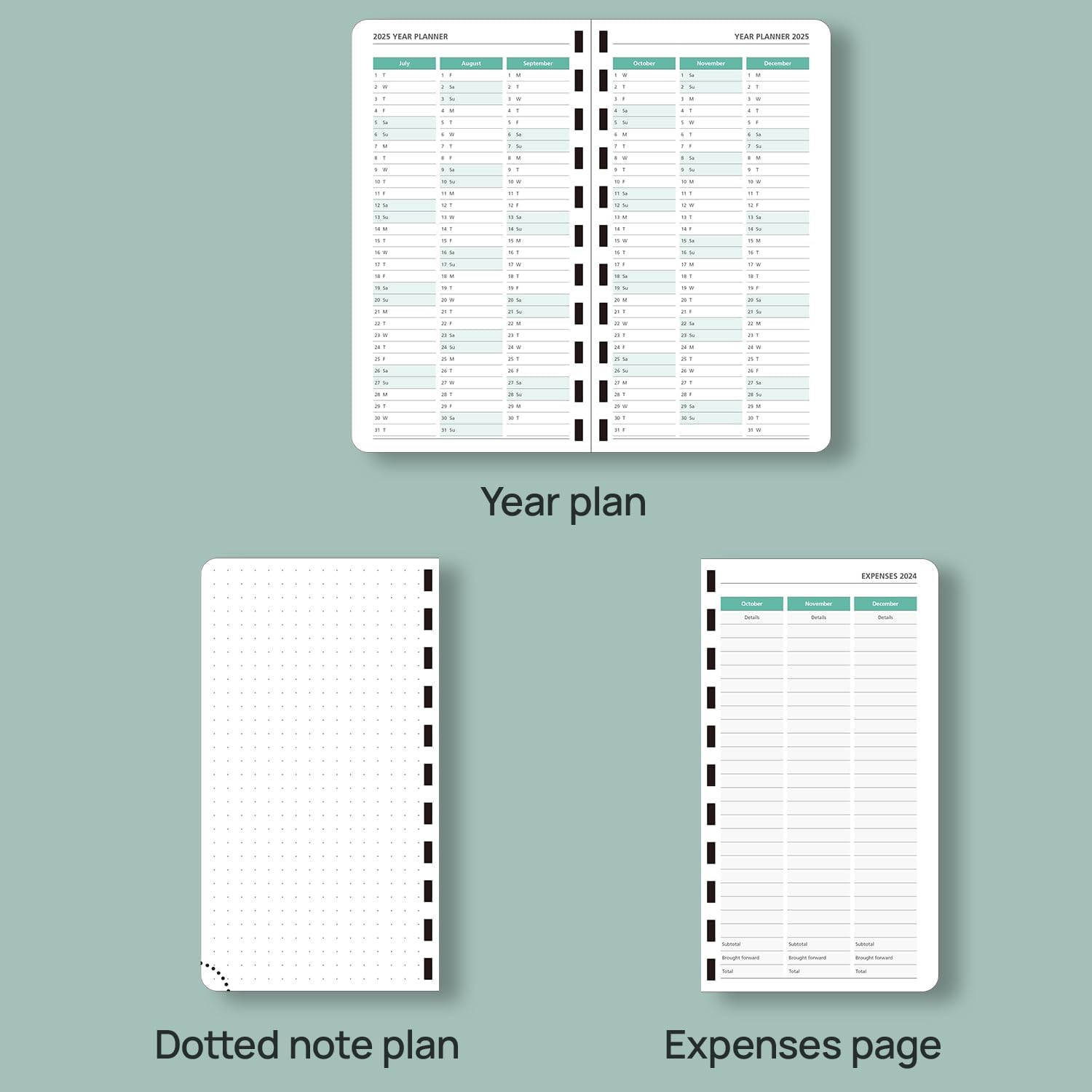 - EXTRA FUNCTION PAGES - Includes a 2025-2026 Yearly Overview, Holiday & Calendar, Monthly Expenses, Contact & Password pages, and 7 dotted notes pages for detailed jotting.
