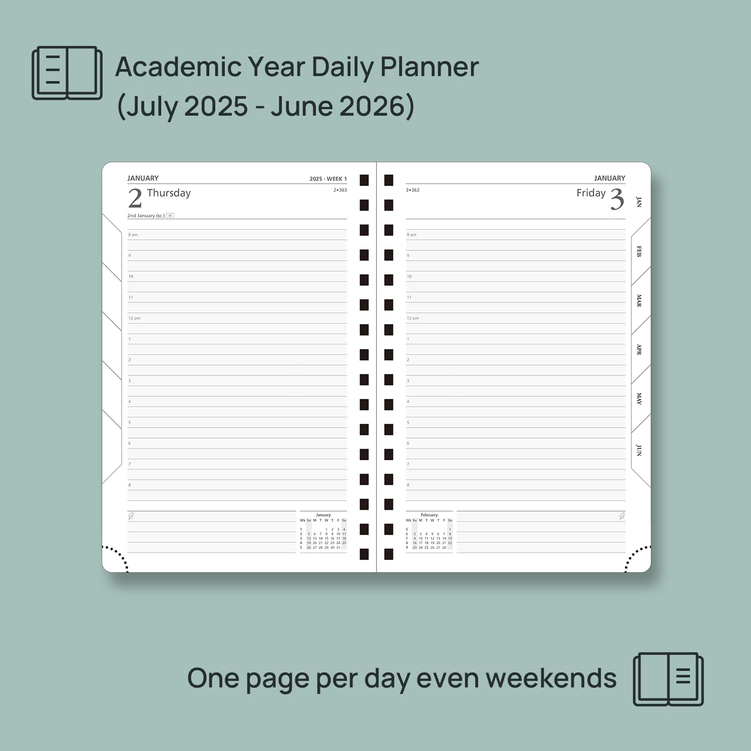 - One Page Per Day Even Weekends: This daily planner (July 2025-June 2026)features 365 daily pages,which presents spacious everyday planning with hourly schedules for your appointments, which makes your busy daily routines organized.