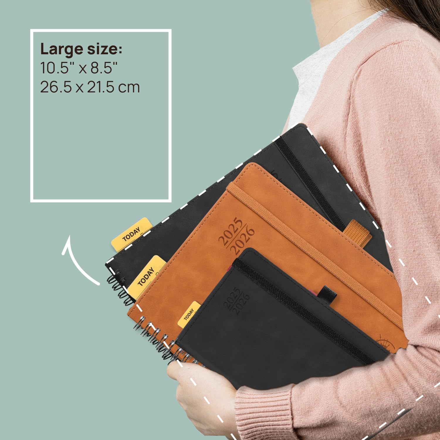 POPRUN Planner 2025-2026 Weekly Planner Notebook (Large 8.5''x 10.5'') Academic Calendar (JUL.25 - JUN.26) Appointment Book with Monthly Tabs, Spiral Soft Cover, Inner Pocket, 100 GSM - Cerulean Blue