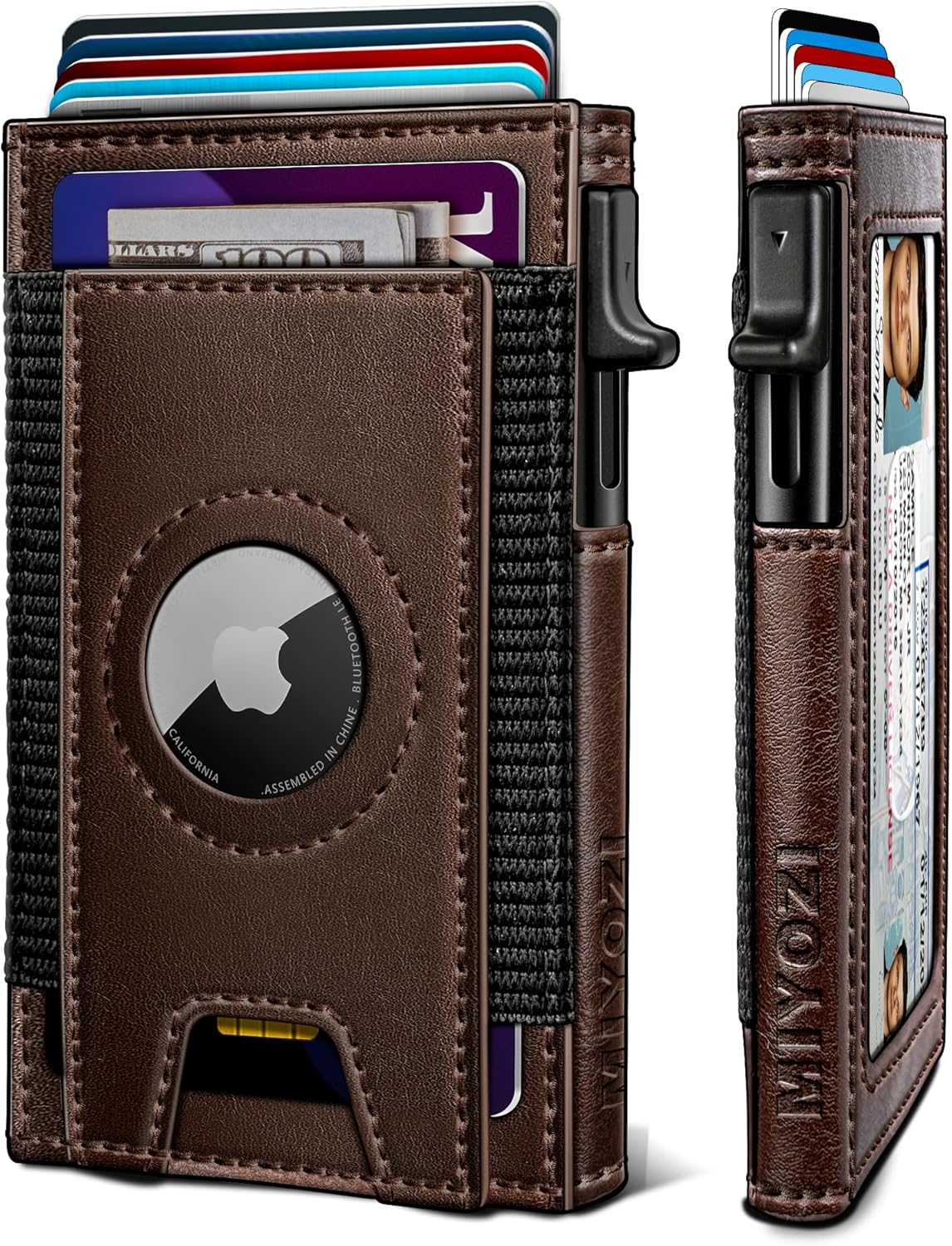 Airtag Wallet for Men, Slim Pop Up Credit Card Holder RFID Blocking Mens Minimalist wallet for 7-9 Cards ID Window, with Gift Box
