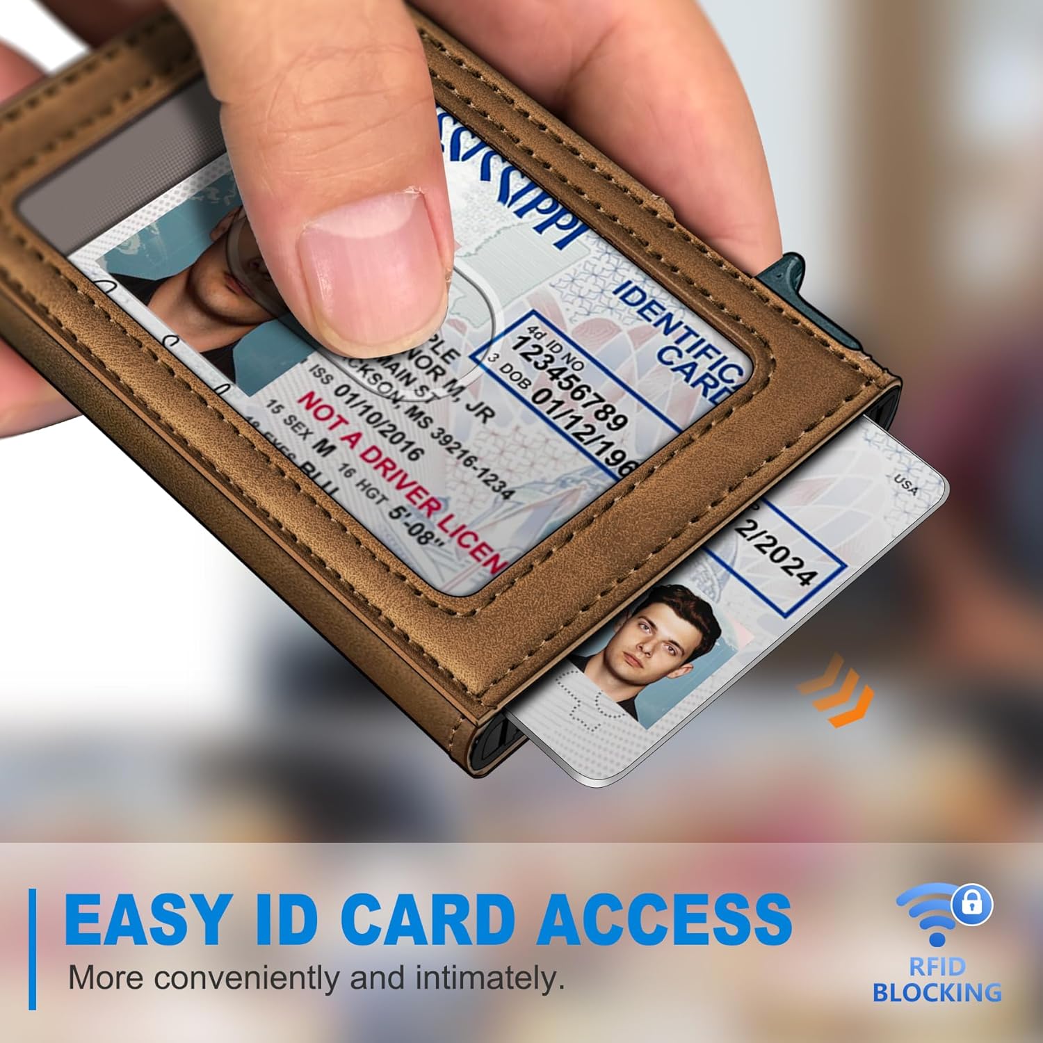 • QUICK POP-UP ACCESS - This minimalist wallet holds to 7-9 cards , metal card holder for 5 cards, easy quick pop-up access. backside 1 ID window, the cash pocket allows you to hold folded bills or 3 Credit cards secure , Ideal for drivers and travelers, offering a sleek and practical design.