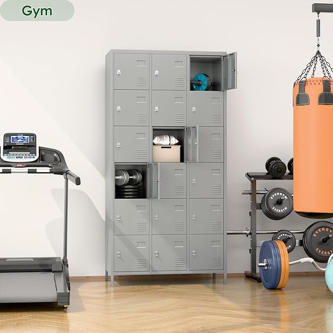 Metal Lockers for Employees with Lock,Metal Storage Locker with 18 Doors for School Garage Office Gym Bedroom,Assembly Required,18 Door Light Grey