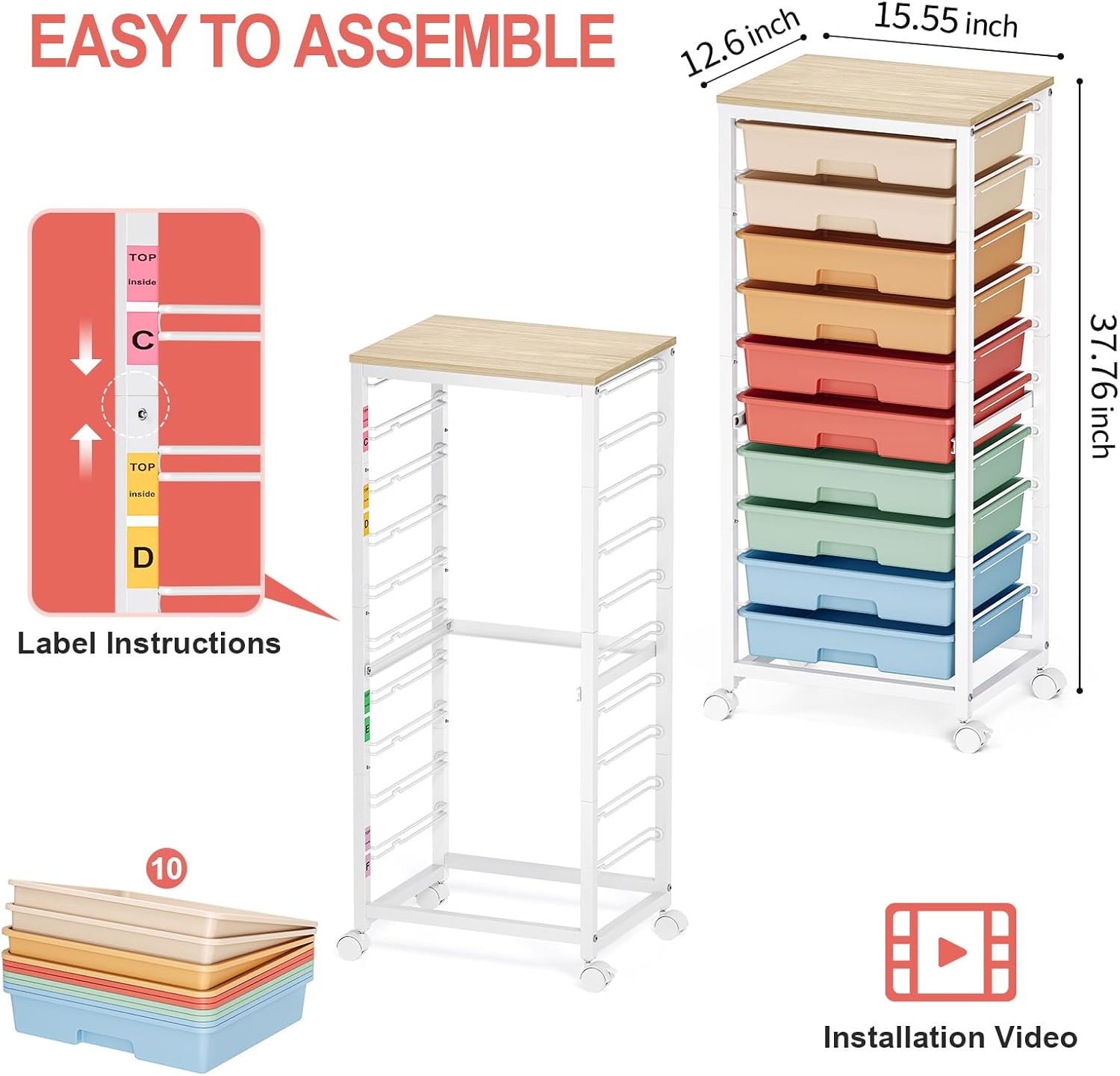 - MULTI-PURPOSE STORAGE CAPACITY: The overall Dimensions of this 10 drawer cart is 15.55"D x 12.60"W x 37.76"H. This rolling craft cart with mulity colors that store a variey of household items that are frequently used in the bedroom, office, closet, craft room, classroom or dorm.