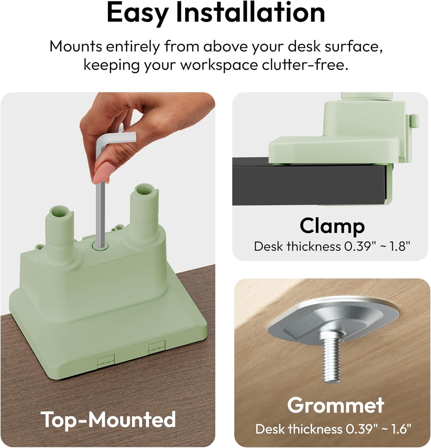Pixio PS1D Wave Mint Dual Monitor Arm Stand Desk Mount - Fits up to 32 inches Monitors and up to 19.8lbs. VESA Compatibility and Integrated Cable Management